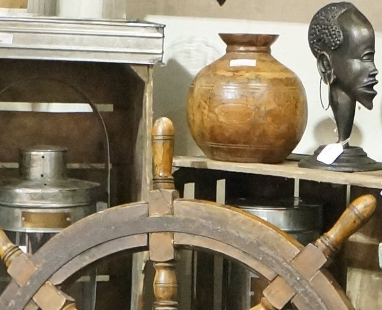 Bring nautical charm and vintage character to your space with this Original Old Ship Wheel. Measuring approximately 43 inches wide, each wheel is unique with slight variations in size and color, making it a one-of-a-kind decorative piece. Perfect for nautical-themed décor, restaurants, or living spaces, this authentic ship wheel adds a bold statement to walls, doors, or display areas.