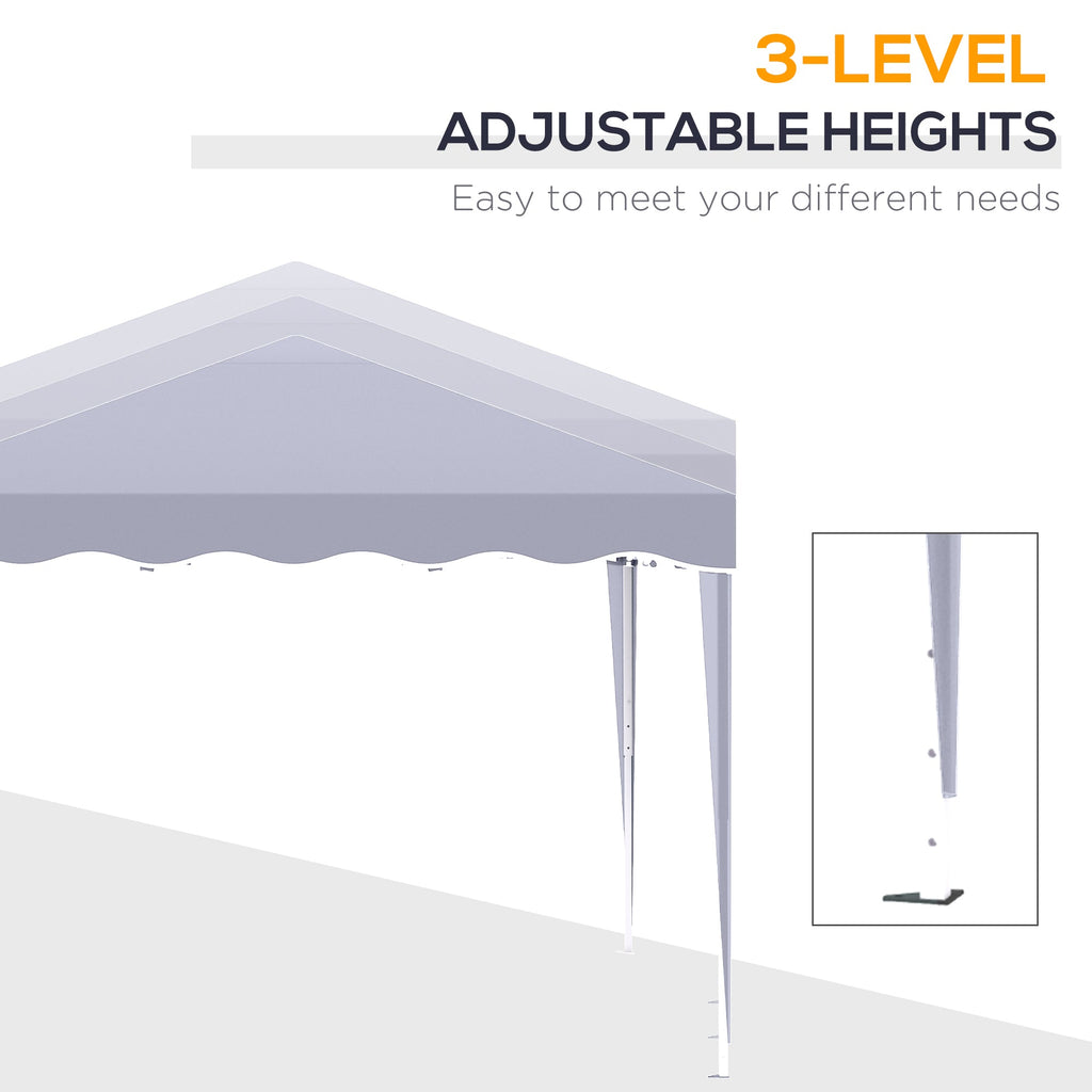 Protect yourself and your guests from the elements with our easy-to-assemble pop-up canopy tent. The durable 210D wavy-edge oxford cloth top with a silver lining provides excellent protection against both direct sunlight and water. Whether you’re hosting a wedding reception, company event, graduation, or enjoying a day at the farmers market, this canopy creates a perfect space for your outdoor activities. The steel frame is designed for maximum strength and stability, featuring three adjustable heights to suit your event's needs. When the fun is over, simply fold the tent, pack it into the carrying bag, and transport it to the next location. It’s that easy! This canopy comes with ground stakes, guy ropes, and sandbags to secure it safely to the ground.