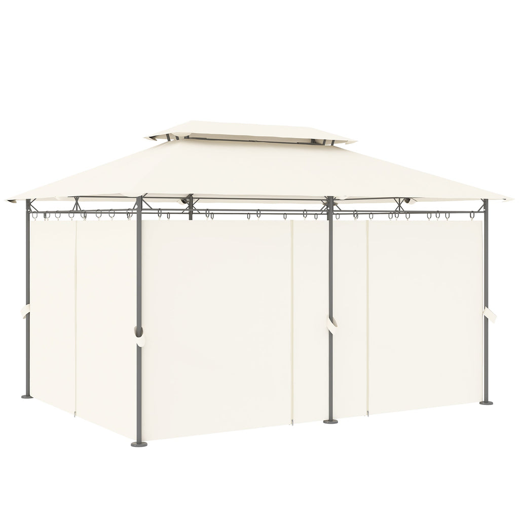 Create the perfect outdoor retreat with this 10' x 13' soft-top gazebo, designed for superior ventilation, sun protection, and durability. The double-tiered roof enhances airflow, keeping you cool while reducing wind stress and heat buildup. Built for stability, it features a heavy-duty, powder-coated metal frame with six sturdy columns that can be secured with stakes or screws for extra reinforcement. The six removable curtains offer customizable shade, effortlessly transforming your space into a private, sun-protected oasis. With a spacious 130ft² coverage area, this gazebo comfortably fits up to 12 people, making it ideal for social gatherings, outdoor dining, or a hot tub enclosure. Assembly requires three people.