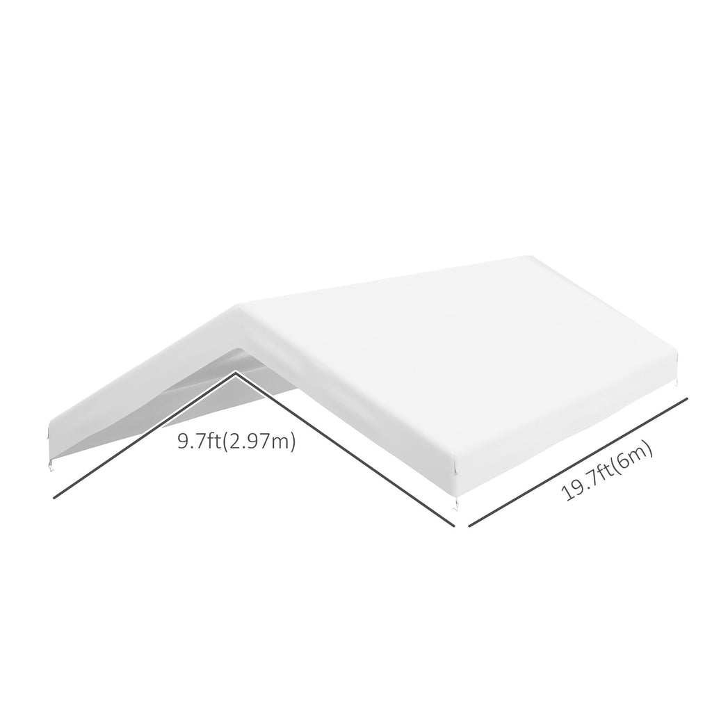 This high-quality replacement top is designed for 10' x 20' carports, providing protection from the elements. Made from durable anti-UV polyethylene (PE), this cover shields your vehicle from light rain, wind, and dirt. It's easy to install, with included ball bungee cords for quick attachment to your carport's roof frame. Two people can set it up in just 10 minutes. This replacement canopy is compatible with Outsunny portable garage models 84C-386V00 Series and 84C-207 Series, ensuring a seamless fit.
