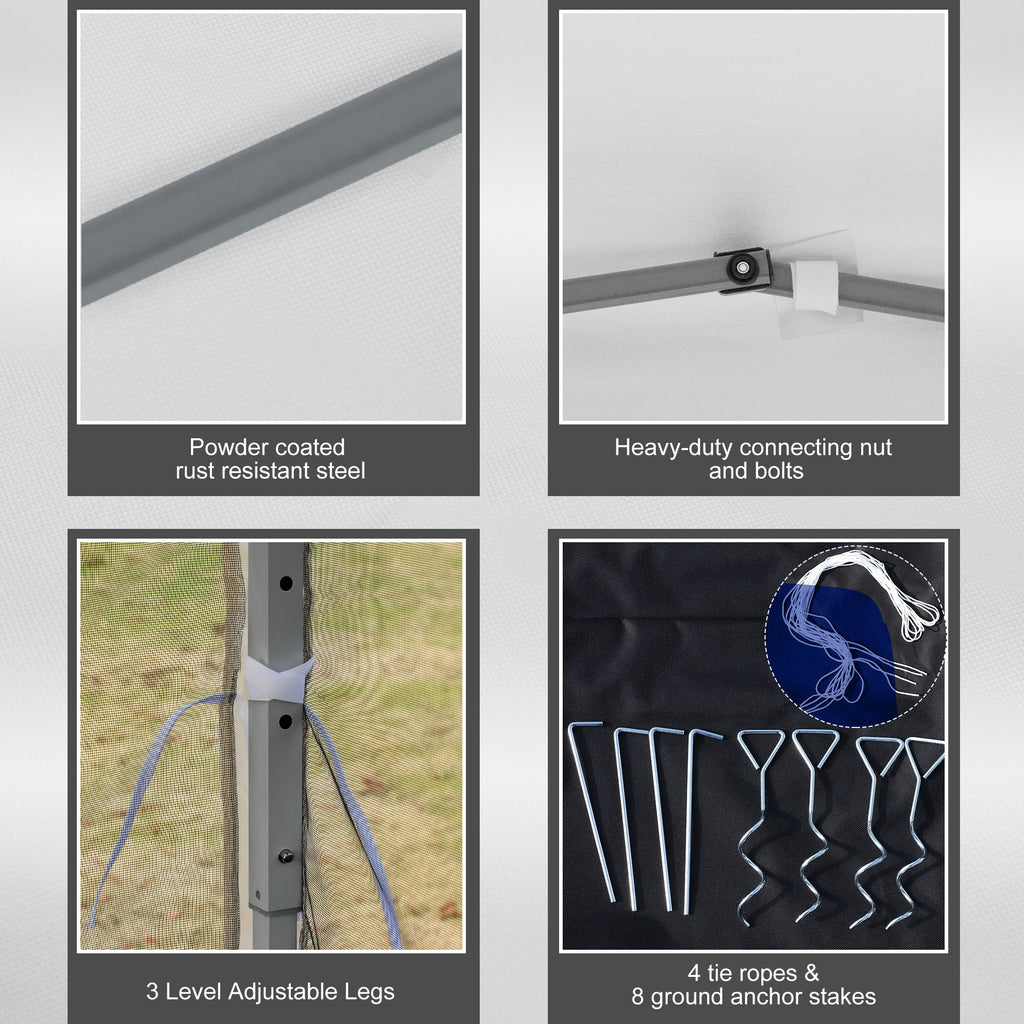 Create a comfortable and protected outdoor space with this versatile pop-up gazebo. Designed for easy transportation and quick assembly, this tent is perfect for various outdoor occasions, from backyard gatherings to camping trips. The durable Oxford fabric roof reduces heat and repels water, while the elegant black mesh sidewalls keep insects out while allowing for airflow. The breathable netting attaches securely with hook-and-loop fasteners and features zippered doors for easy access. Built for long-lasting use, the powder-coated metal frame provides stability, and the three-level adjustable legs let you customize the height to fit your needs. When it's time to pack up, simply fold it down and store it in the included carrying bag.