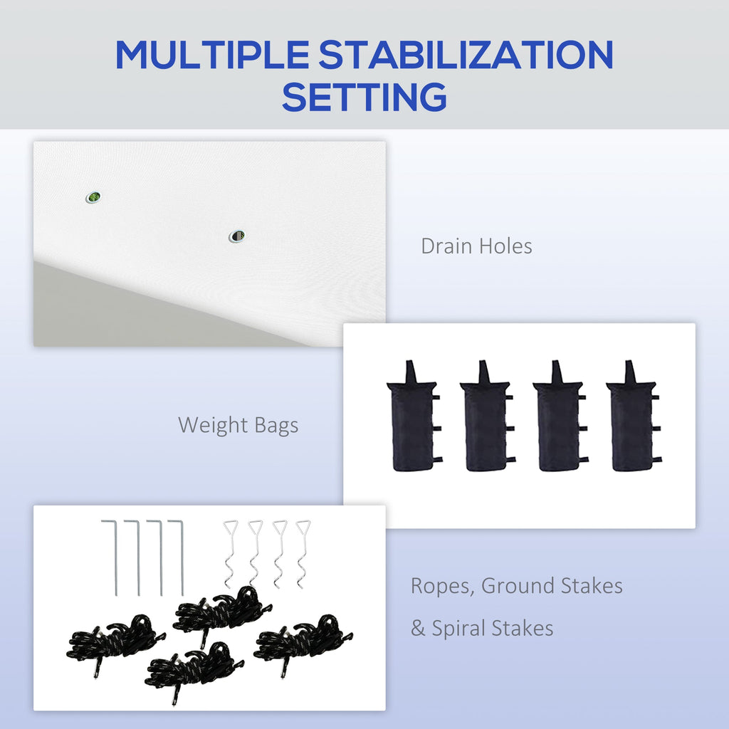 Secure Anchoring: Includes ground stakes, spiral stakes, guy ropes, and sandbags for added stability.