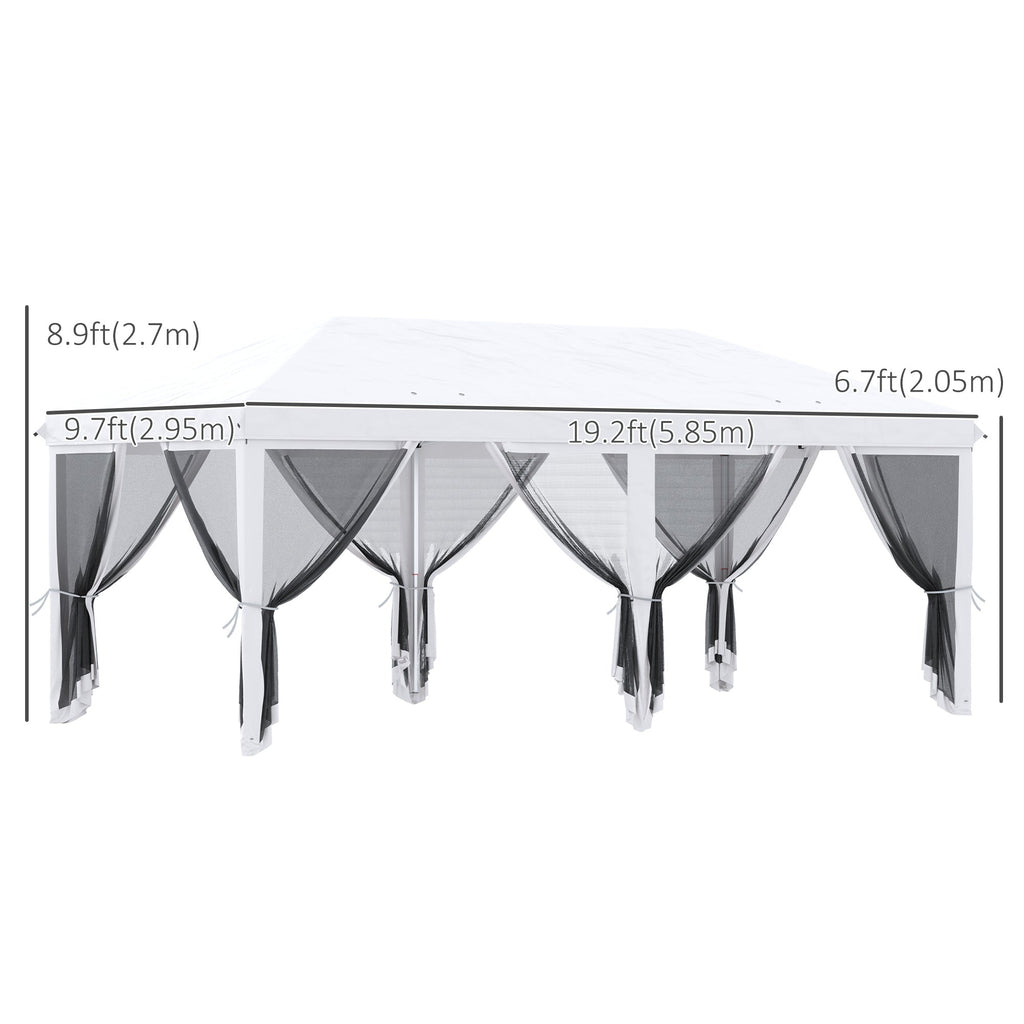 Tent Dimensions: Overall Size: 19.2' L x 9.7' W | Peak Height: 8.9' | Sidewall Height: 6.7'.