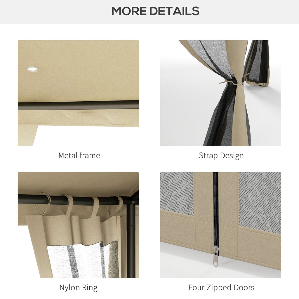 Full Privacy Curtains: Features mosquito netting for insect protection and enhanced privacy.
