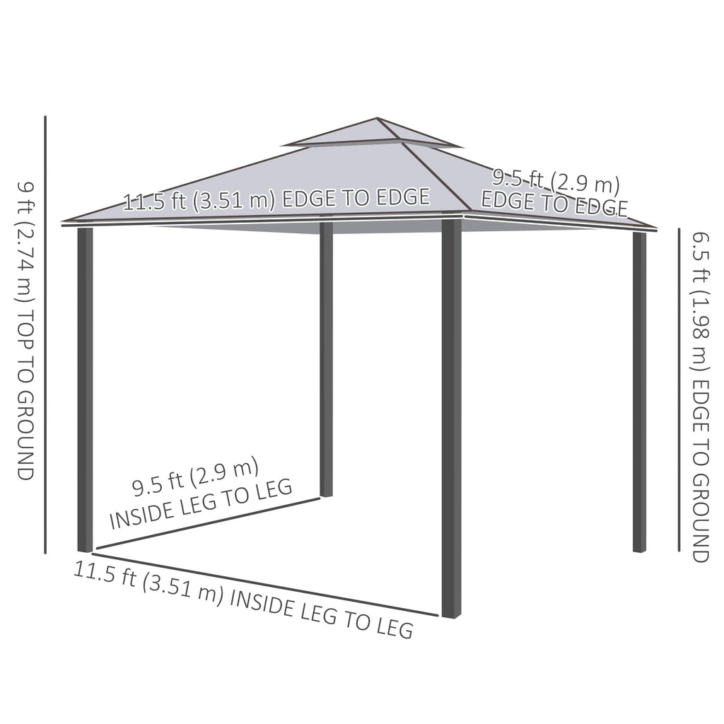Enhance your outdoor living space with this elegant 12x10 gazebo, designed to provide a shaded retreat for gatherings, picnics, BBQs, and social events. Its beautifully patterned side panels add a touch of sophistication, making it a stylish addition to any backyard, patio, or garden. Built with a robust powder-coated steel frame, eight ribs, and secure 7-shaped stakes, this gazebo is made to last. It includes four guy ropes for extra stability and an adjustable canopy with eight grommets for efficient water drainage. The weather-resistant polyester canopy with PA coating offers sun protection and light rain resistance. A two-tier roof with mosquito netting ensures optimal airflow while keeping out unwanted pests and providing additional wind resistance. For enhanced privacy and complete protection from insects, this outdoor gazebo also features full mosquito netting. Assembly is required with an intuitive intubation connection system for a straightforward setup.