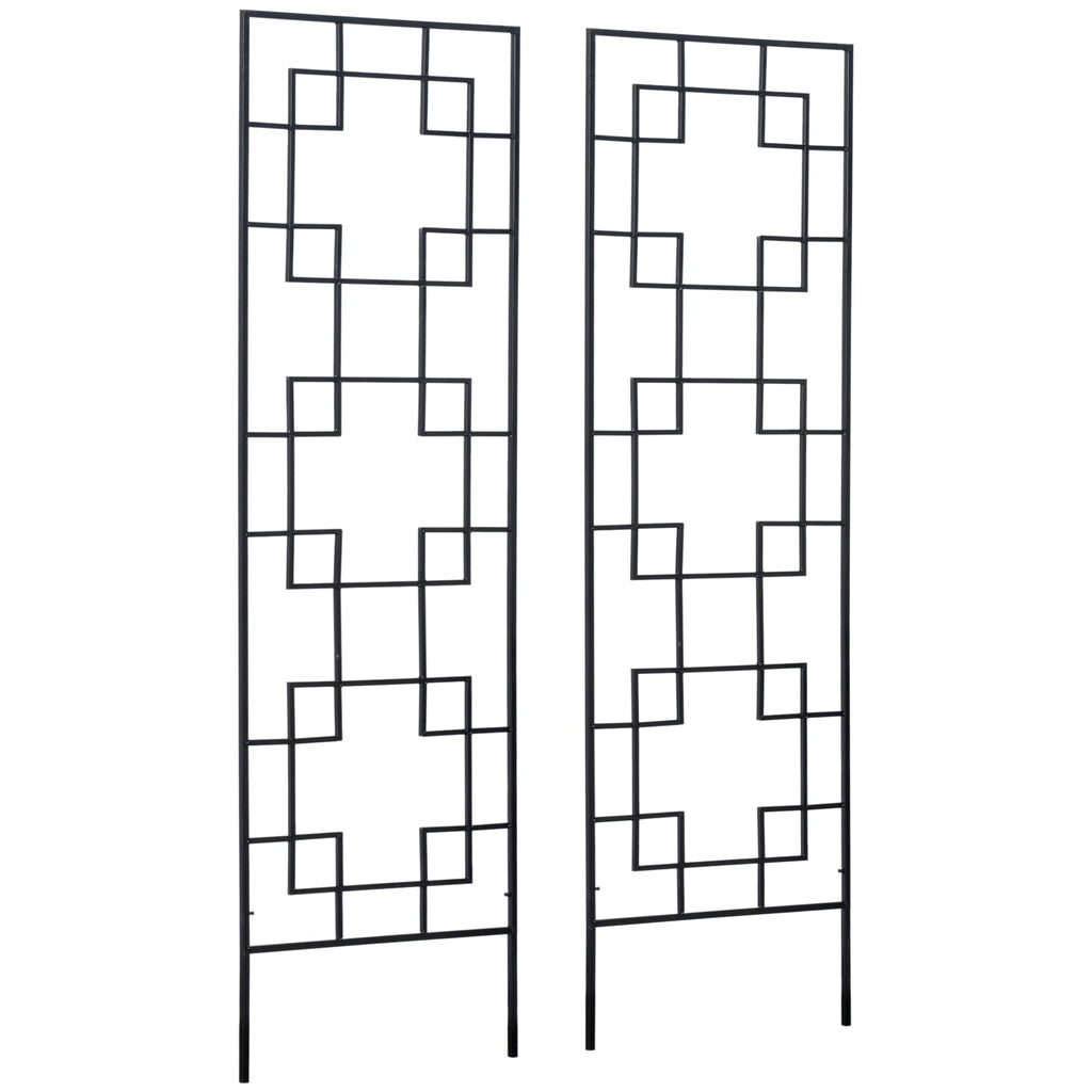This pack of 2 plant trellises is designed to enhance the growth and organization of your garden plants and vines. Whether you're cultivating climbing plants or flowers, these trellises help keep your garden neat and your plants untangled. Featuring a stable design with ground inserts, they can be easily inserted into the soil, offering a secure, windproof structure that can support even heavier plants. The trellises are versatile and can be grouped to create a beautiful statement fence or used to add privacy to your outdoor space. Made with a rust-resistant powder-coated metal frame, they are built to withstand the elements and provide long-lasting use in any garden setting.