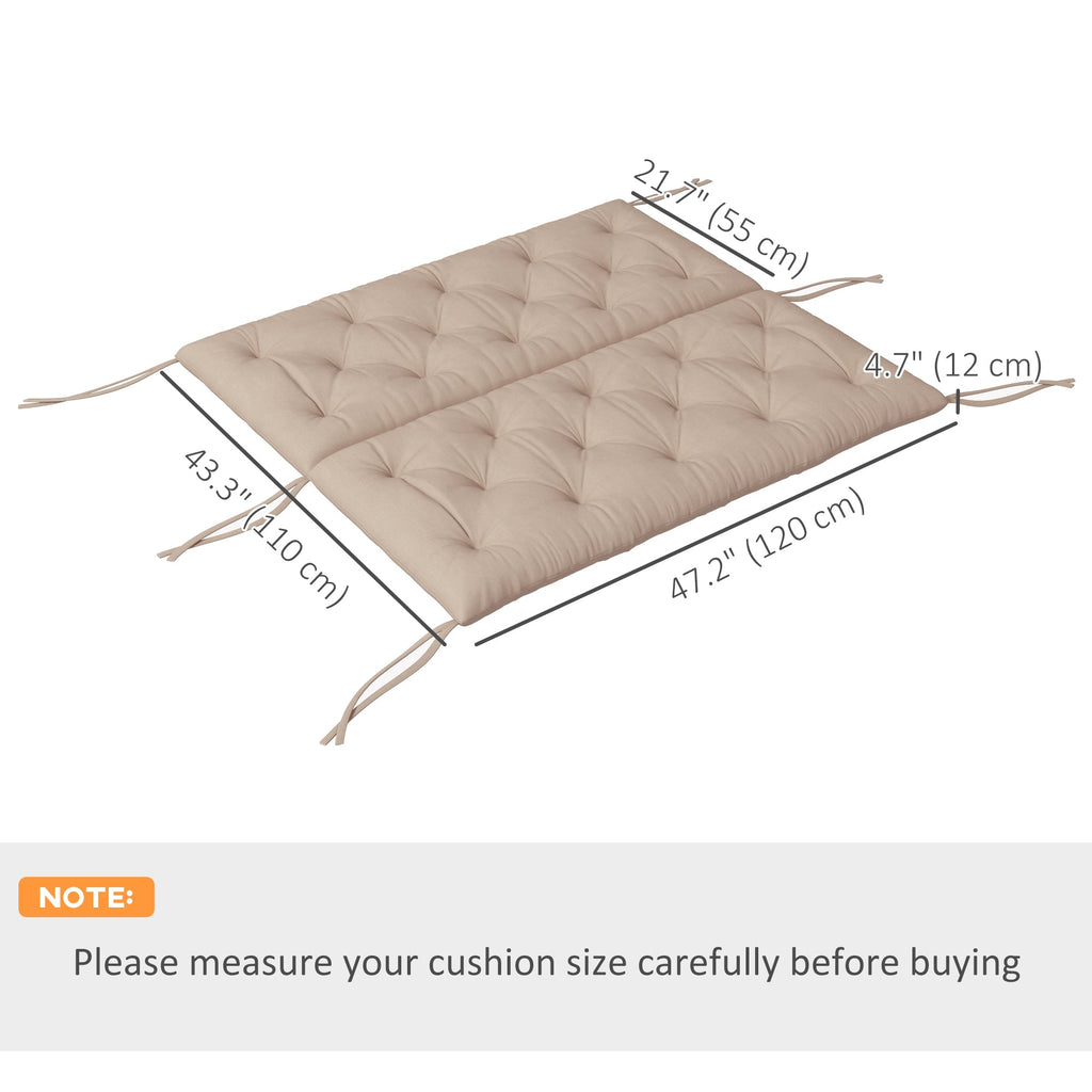 Upgrade your outdoor seating comfort with this stylish and practical patio bench cushion. Designed to fit most standard outdoor benches and garden sofas, this cushion features a thick 4.7" foam filling that delivers superior support and relaxation. It comes with 6 built-in ties to secure the cushion in place, preventing slipping or unwanted movement during use. Crafted from high-quality, high-density polyester fabric, this cushion not only provides long-lasting comfort but also resists wear for everyday outdoor enjoyment. Its elegant, modern design makes it ideal for refreshing older furniture or adding a decorative touch to your patio décor. Delivered in a vacuum-compressed package, the cushion fluffs up to its full plush thickness once opened. Perfect for enhancing your backyard, patio, or garden bench seating with lasting comfort and contemporary charm.
