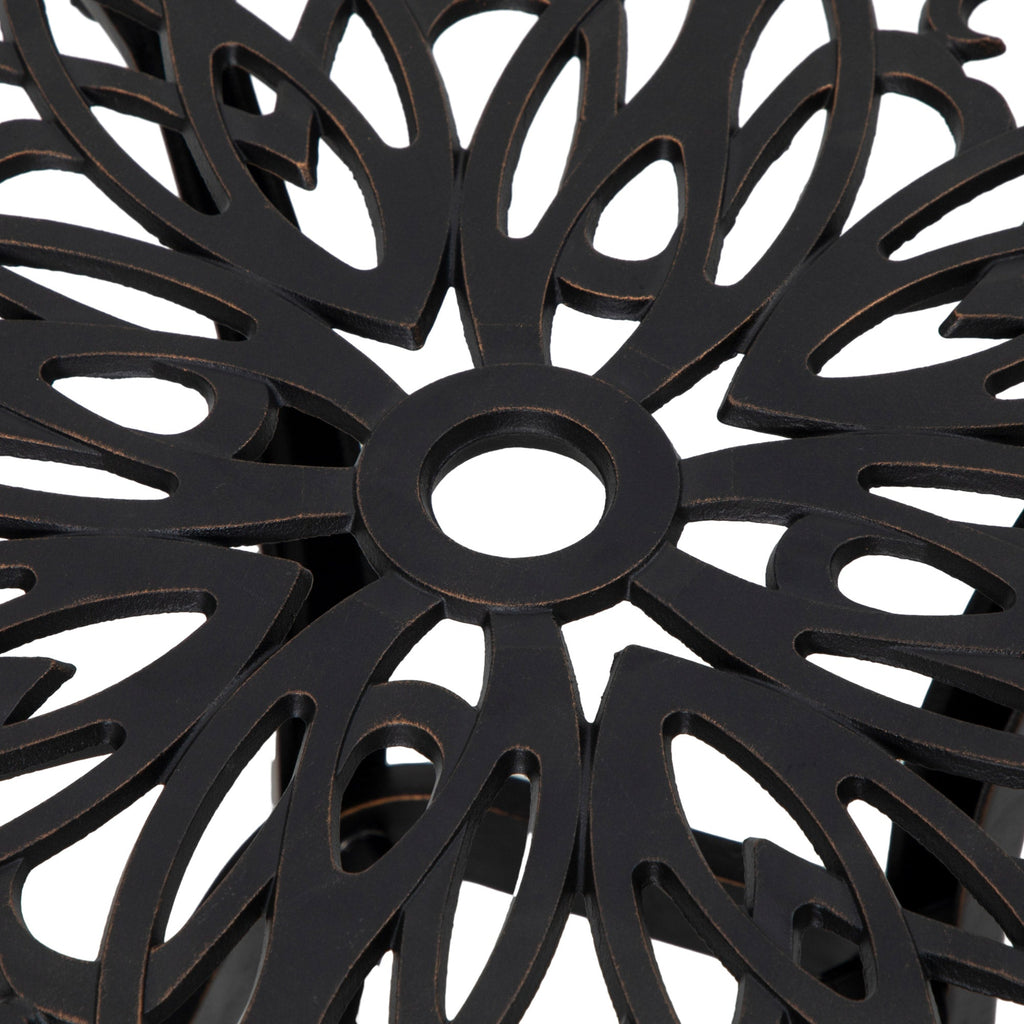 Elegant Style: The table features a floral design with outward curved legs, offering a charming, elegant appearance in your outdoor area.
