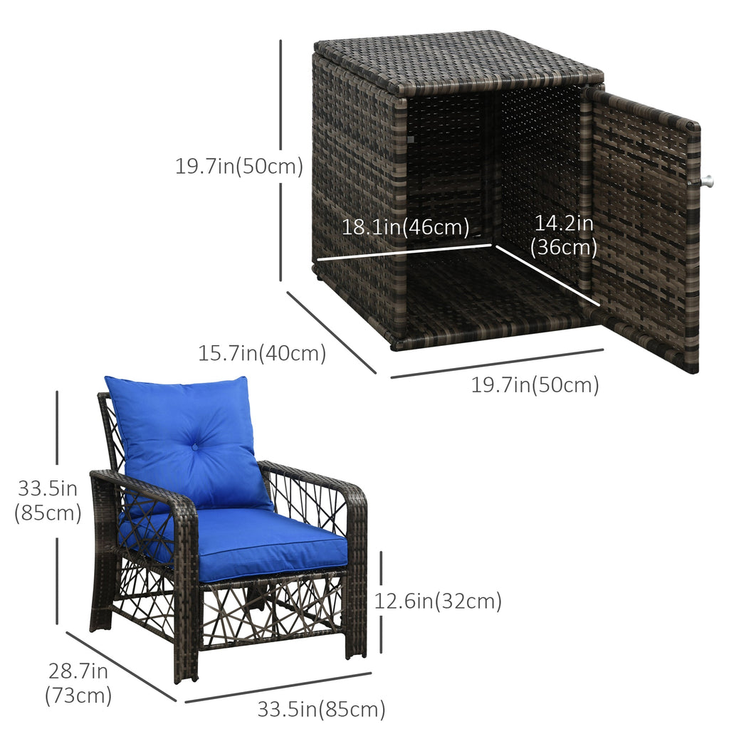 Enjoy a peaceful time with friends in your garden or patio with this set of 3 wicker patio chairs. Crafted from durable PE rattan, these chairs offer the stylish look of traditional wicker but with enhanced wear and weather resistance, making them ideal for long-term outdoor use. The set includes a comfortable padded cushion with a removable, zippered cover for easy cleaning, and you can choose whether to use the cushion depending on the weather. The sturdy steel frame, coated to resist rust, supports the hand-woven PE wicker, ensuring strength and durability. The accompanying tea table not only adds to the set’s charm but also features convenient storage space for garden tools, toys, or other essentials, keeping your outdoor area neat and organized.
