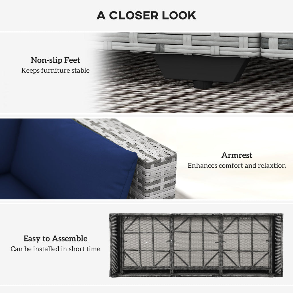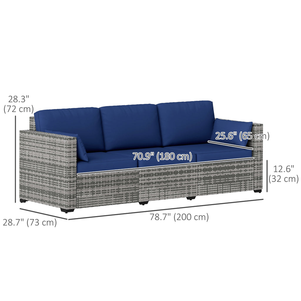 Enhance your outdoor living space with this stylish and durable three-seater patio sofa, perfect for gatherings with friends, casual family conversations, or relaxing movie nights under the stars. Designed to fit seamlessly into various outdoor settings, including patios, decks, conservatories, porches, gardens, terraces, and balconies, this sofa offers both functionality and elegance. Constructed with a galvanized steel frame and a powder-coated finish, it is wrapped in all-handwoven twin half-round PE rattan, ensuring resistance to UV rays and light water exposure while remaining easy to clean. Adjustable foot pads provide additional stability and protect flooring surfaces. Experience superior comfort with soft, padded seat and back cushions, designed to support your body for extended relaxation. Each cushion cover features a convenient zipper, allowing for easy removal and washing. With simple assembly that requires just two people and approximately 30 minutes, setting up your new outdoor sofa is hassle-free. Measuring 78.7" W x 28.7" D x 28.3" H (200 x 73 x 72 cm), this spacious sofa accommodates a weight capacity of 792 lbs. (360 kg). To extend the lifespan of your furniture, a protective cover is recommended when not in use. Assembly required.