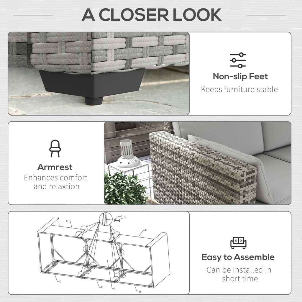 Create a cozy and stylish outdoor seating area with this three-seater PE rattan wicker patio sofa, perfect for gatherings with friends, casual family conversations, or movie nights under the stars. Designed for versatility, it seamlessly fits into various outdoor settings such as patios, decks, conservatories, poolside areas, porches, gardens, terraces, and balconies. Crafted with durability in mind, this outdoor couch features a sturdy galvanized steel frame with a powder-coated finish, wrapped in handwoven twin half-round PE rattan. This high-quality material is UV-resistant, easy to clean, and withstands light water exposure, ensuring long-lasting use. Adjustable foot pads provide stability and protect flooring surfaces. The plush seat and back cushions offer superior comfort, making relaxation effortless. The cushion covers are equipped with zippers for easy removal and washing, keeping your outdoor sofa fresh and clean. With a straightforward assembly process that takes about 30 minutes and requires only two people, setting up your new patio furniture is quick and hassle-free. Measuring 78.7" W x 28.7" D x 28.3" H (200 x 73 x 72 cm), this spacious sofa has a weight capacity of 792 lbs. (360 kg), making it ideal for multiple users. To extend its lifespan, a protective furniture cover is recommended when not in use. Assembly required.