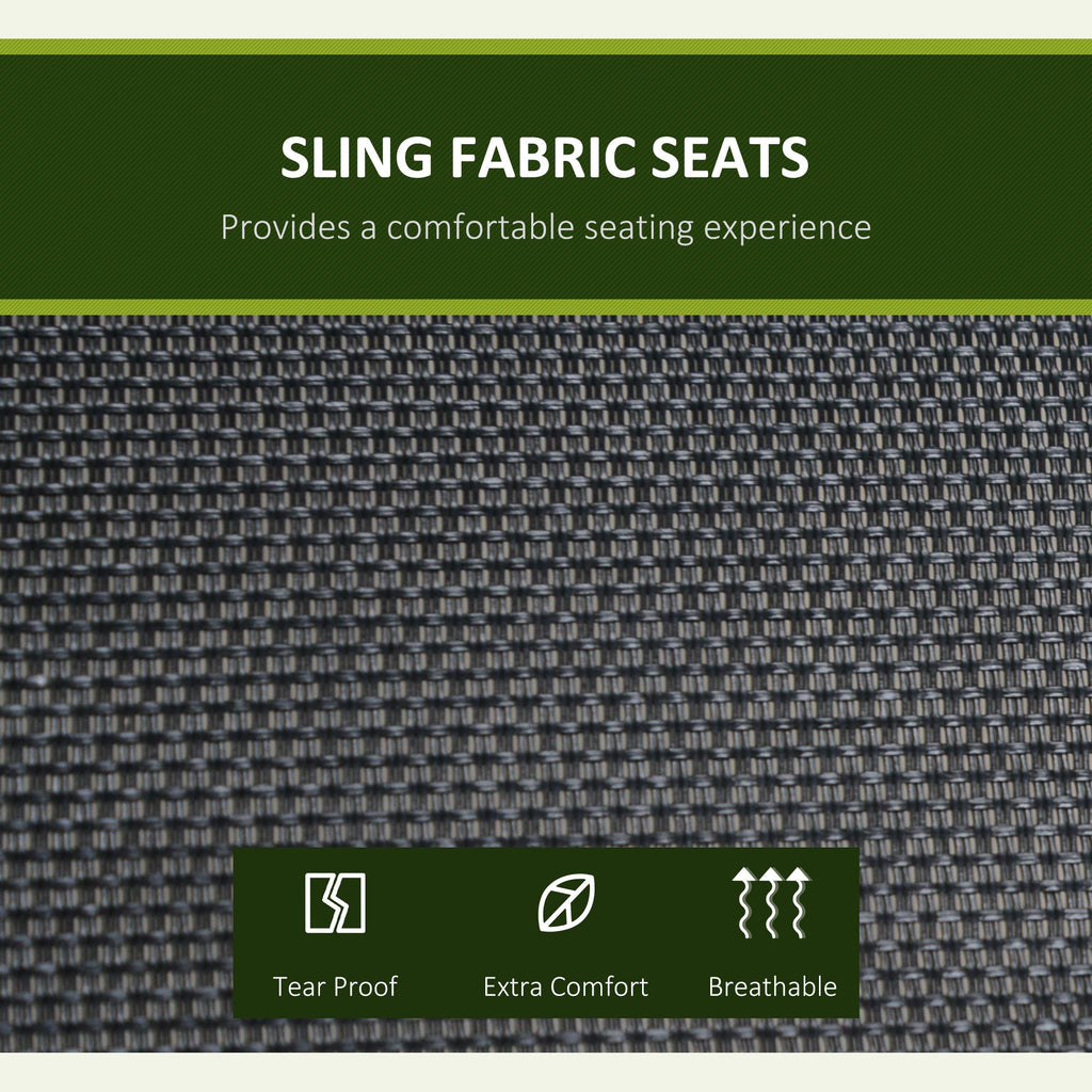 Smooth sling fabric seat is comfortable, resilient, and easy to clean.