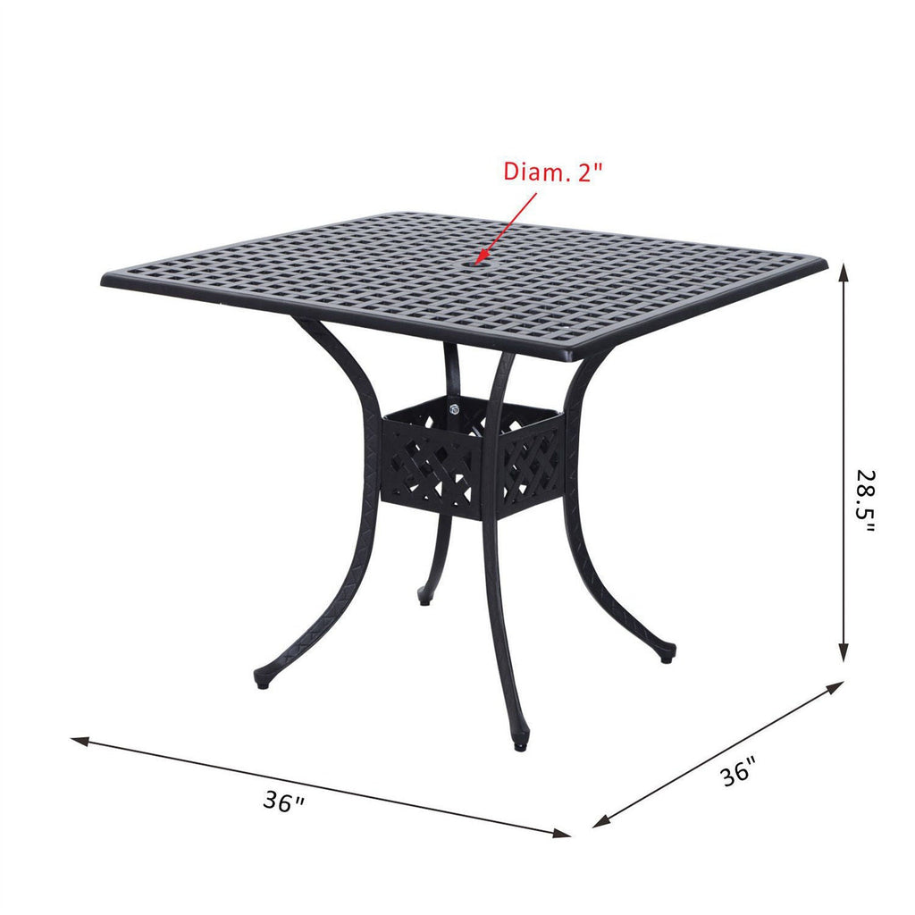 Transform your outdoor space with the elegant Outsunny outdoor dining table. Featuring an intricate metalwork design, this cast aluminum table brings style and sophistication to your patio, garden, or balcony. Crafted from solid, rust-resistant cast aluminum, it ensures durability while maintaining a lightweight, comfortable feel that’s perfect for outdoor use. The built-in umbrella hole at the center allows you to easily add a sunshade for extra comfort on sunny days. For a complete set, pair it with our matching Outsunny patio chairs, creating a coordinated and stylish outdoor dining area.