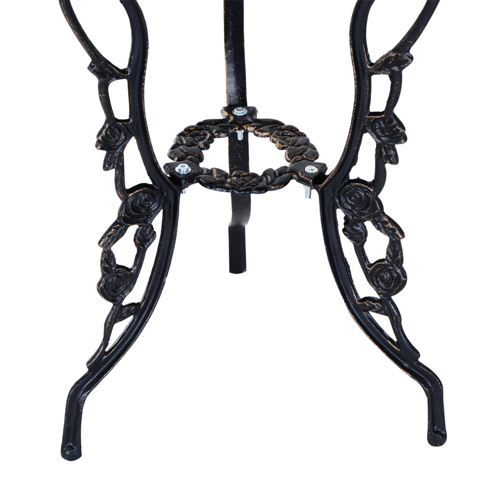 Create the perfect outdoor retreat with this stylish garden table set, featuring one round table and two matching chairs. Ideal for breakfast, afternoon tea, or casual get-togethers, this set combines elegance with functionality. The table includes a center hole designed to hold a parasol with a pole diameter of either Φ1.75" or Φ1.5", offering the option to add an umbrella for shade and comfort during sunny days. Crafted from durable metal, this bistro set is both weather-resistant and wear-resistant, making it suitable for outdoor use in various conditions. The chairs and table feature slightly adjustable foot pads, ensuring stable use even on uneven ground, while also protecting the feet and the floor from damage. Whether placed on a patio, balcony, or garden, this garden table set is an excellent choice for enjoying the outdoors in comfort.