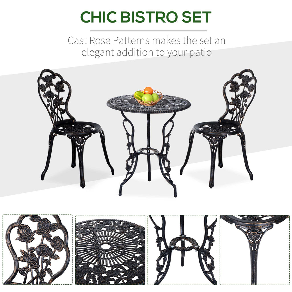 Includes 1 round table and 2 matching chairs, perfect for outdoor dining and relaxing