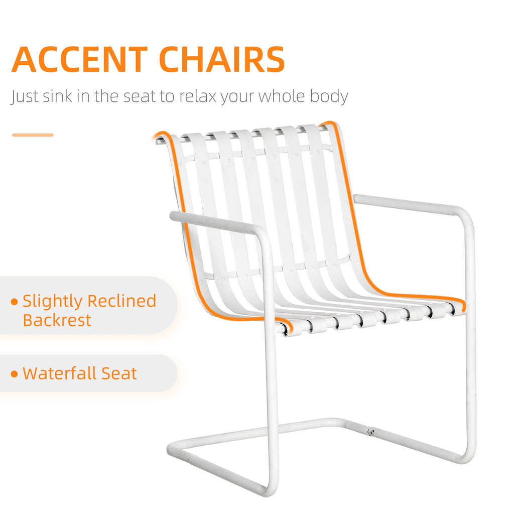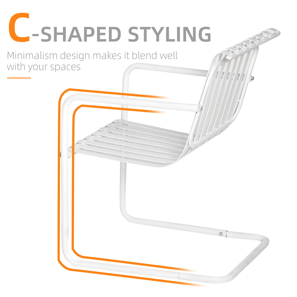 Enjoy your outdoor moments with this stylish three-piece bistro set, which includes two C-shaped garden chairs and a matching table. Ideal for small patios, balconies, lawns, or gardens, this set offers a perfect spot for afternoon tea or casual conversations with friends. The slatted design of both the chairs and the table adds a minimalist touch while allowing rainwater to drain away quickly, ensuring you can enjoy your seating area without delay. The slightly reclined backrests, waterfall seat, and armrests at the perfect height provide a cozy and comfortable sitting experience. Constructed with an all-steel frame using an electrophoresis process, this furniture is not only strong and durable but also water-resistant, making it perfect for outdoor conditions. A beautiful addition to any outdoor area, this bistro set combines practicality with modern style.