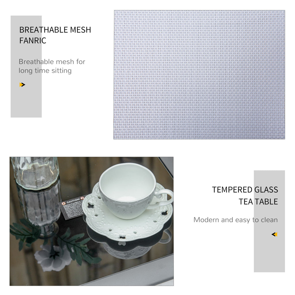 Enjoy ultimate relaxation and comfort with this stylish S-Shaped Chaise Lounge Chair set, perfect for poolside lounging or any outdoor space. This set includes two chaise lounge chairs and one tea table, all designed to enhance your outdoor living experience. The lounge chairs are uniquely shaped in an "S" curve to contour to your body, allowing for a more comfortable reclining position while you bask in the summer sun. The included tea table features a tempered glass top, offering both elegance and functionality for serving drinks, playing games, or enjoying afternoon tea. The flat surface of the table makes it easy to clean with a simple wipe-down. With their sturdy metal frames and breathable mesh fabric, these lounge chairs are crafted to endure the rigors of daily outdoor use, ensuring long-lasting durability. Whether placed by the pool, on your patio, or in your garden, these chaise lounges will provide both comfort and style. The set is designed with simplicity in mind, featuring armrests on the chairs for added comfort. The overall dimensions of the chaise lounges are 23.2" W x 66.5" D x 26" H, and the tea table measures 16.1" W x 16.1" D x 17.7" H, making it an ideal size for small gatherings or a solo retreat.