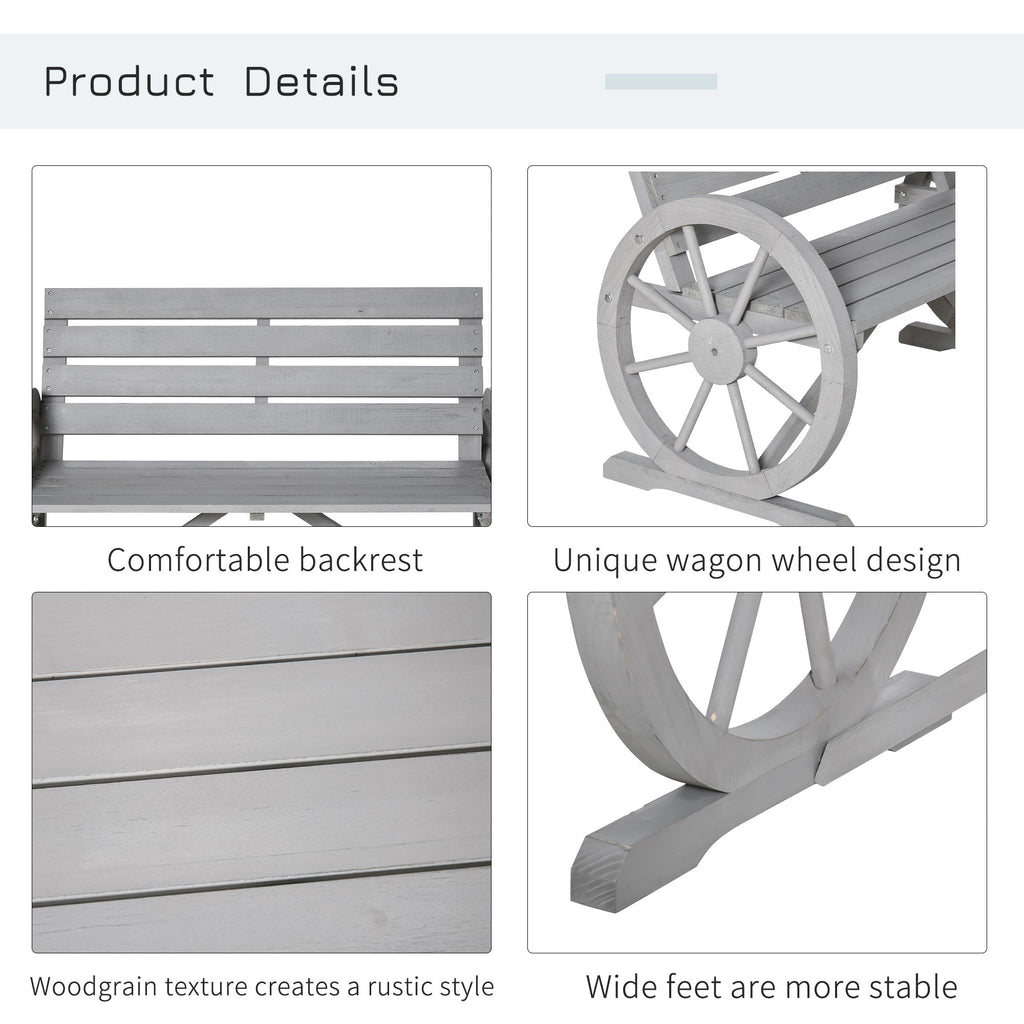 Add a touch of rustic charm to your outdoor space with this beautifully designed garden bench. Perfect for patios, gardens, or any outdoor area, this bench features a unique wagon wheel armrest design that will certainly become a conversation starter among your guests. Constructed from heavy-duty solid fir wood, it offers a sturdy and authentic look while ensuring durability for years of comfortable use. The wide slatted seat provides ample space for sitting and has been specially treated to be waterproof, making it perfect for all kinds of weather. With a weight capacity of 550 lbs (250 kg), it’s strong enough to accommodate multiple people, making it a perfect addition to your outdoor gatherings. Assembly is required.