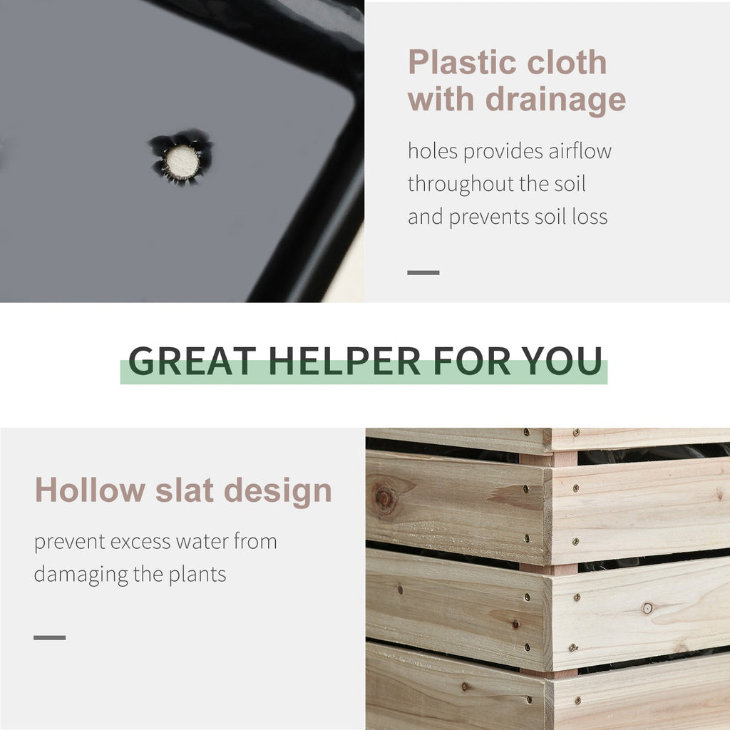 Elevate your gardening experience with this 4-piece garden planter raised bed set, designed to offer ample space for your plants, flowers, herbs, and more. Made from natural solid wood, these planters provide a sturdy and reliable structure that keeps your pots in order while adding a touch of elegance to both outdoor and indoor spaces. With 4 versatile combination modes, you can use the planters individually or combine all four for a larger planting area. For creative flexibility, two beds can be stacked to create a higher wall for special plants, giving you the freedom to tailor the layout to suit your gardening needs. The raised design of the planters allows you to garden without bending down, reducing strain on your back and knees. Each planter includes an inner bag with drainage holes, ensuring proper airflow for the soil and preventing soil loss while protecting your plants. The hollow slat design helps prevent excess water from damaging your plants, making these planters perfect for both beginners and experienced gardeners. The individual planter's dimensions are 19.75"L x 11.75"W x 23.5"H, with a weight capacity of 110lbs per bed.