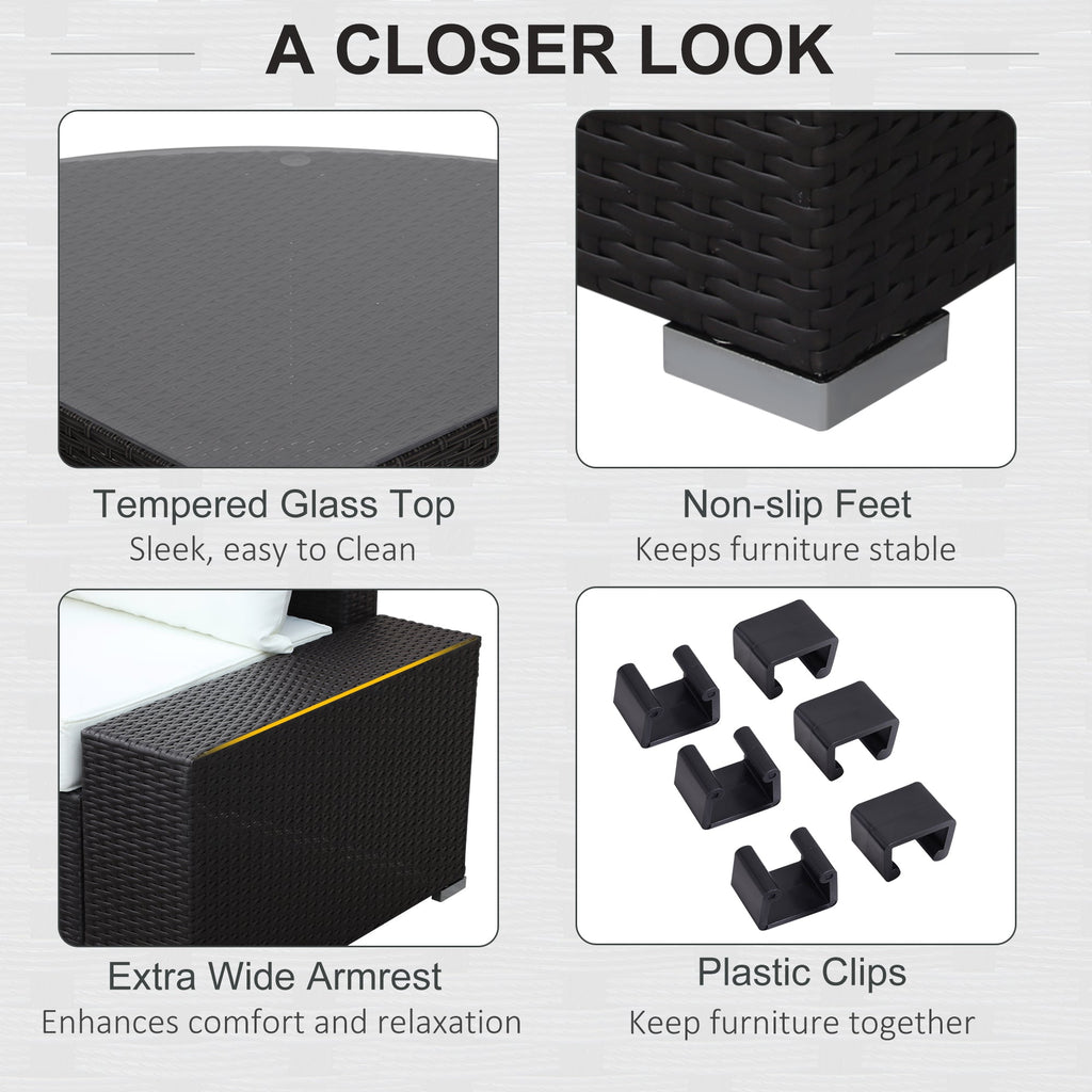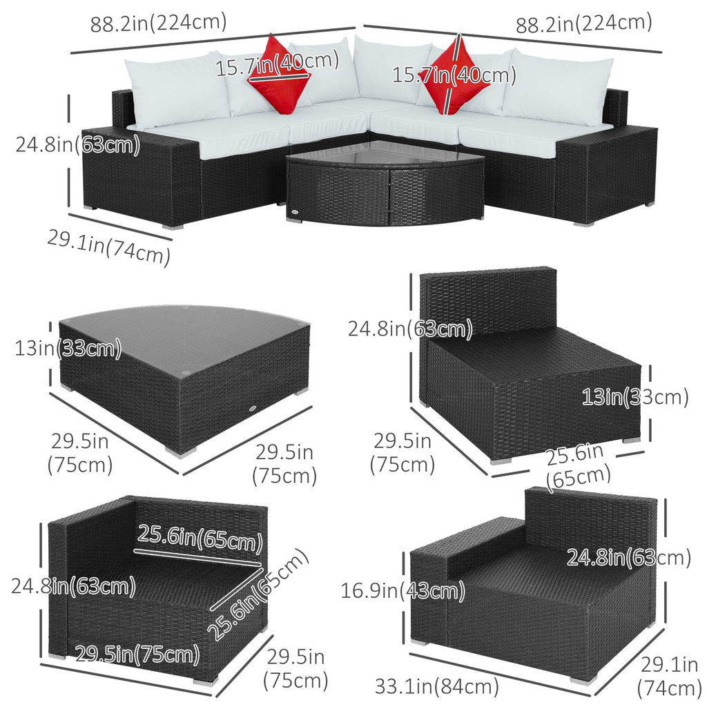 Create the perfect outdoor oasis with this 6-piece rattan furniture set. Designed for comfort and flexibility, this set includes two single-arm corner sofas, one armless corner sofa, two middle sofas, and a matching fan-shaped coffee table. The versatile configuration options allow you to adjust the setup to fit your outdoor space and mood. Perfect for your patio, poolside, porch, or garden, this set provides ample seating for relaxation or entertaining guests. The fan-shaped coffee table, with its 5 mm-thick tempered glass top, offers plenty of space for serving drinks and snacks while adding elegance to your space. The comfortable seating features 4" thick padded cushions for a soft yet sturdy sitting experience, while the included nylon clips ensure stability and connection between the pieces. Made for durability, the set is constructed with a powder-coated metal frame and wrapped in hand-woven flat PE rattan, making it UV-resistant and water-friendly. The cushion covers are removable for easy cleaning, ensuring a low-maintenance yet stylish addition to your outdoor decor.