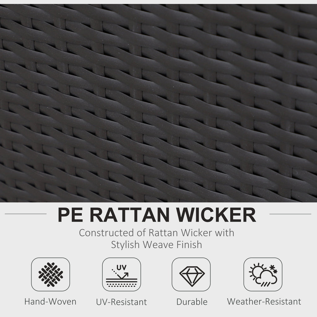 Constructed with a powder-coated metal frame and hand-woven flat PE rattan for durability and weather resistance.