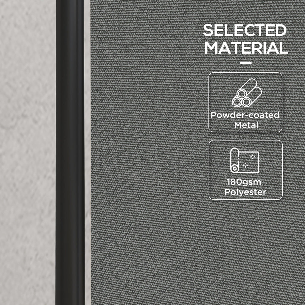 Enhance your living or outdoor space with this practical and multifunctional room divider, designed to provide instant privacy and style wherever you need it. Ideal for creating separate areas in large rooms or sectioning off outdoor patios, this divider also acts as an effective sunshade to block harsh rays during late afternoons. Its flexible design features smooth-rolling wheels that allow you to effortlessly move and position the divider, while integrated brakes ensure it stays securely in place once set. Crafted from a durable metal frame with a rust-resistant powder-coated finish and covered in 180gsm polyester fabric, the screen offers excellent privacy with its opaque, non-see-through material. The elevated base promotes airflow and reduces wind pressure, adding to the structure's overall stability and wind resistance. Measuring 72" L x 11.8" W x 71.3" H (183 x 30 x 181 cm), this versatile divider is quick to assemble and easy to use. Whether indoors or outdoors, it offers a sleek solution to your privacy and shading needs.