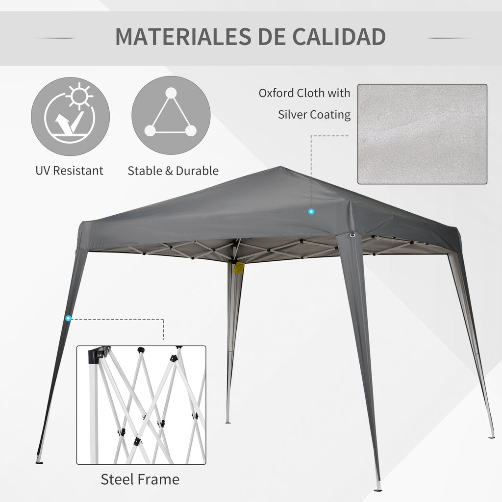 This pop-up outdoor canopy is the perfect solution for your outdoor events like picnics, pool parties, and gatherings. With its easy, tool-free setup, you'll have the canopy up and ready in just minutes. The tent features a water-resistant, silver-coated 210D Oxford fabric cover that offers effective protection from harmful UV rays, ensuring a more comfortable outdoor experience. Built with a rust-resistant powder-coated metal frame, the canopy provides stability and durability, while the 3-level adjustable angled legs, along with 4 ropes and 8 stakes, secure it firmly to the ground, keeping it in place even on uneven surfaces. Its portable design makes it convenient to transport and store, as it folds easily and comes with a carrying bag. With overall dimensions of 94.5" L x 94.5" W x 98.4" H (240 x 240 x 250 cm) and an eave height of 75.6" H (192 cm), this canopy is perfect for any event and provides ample space and shade for guests.