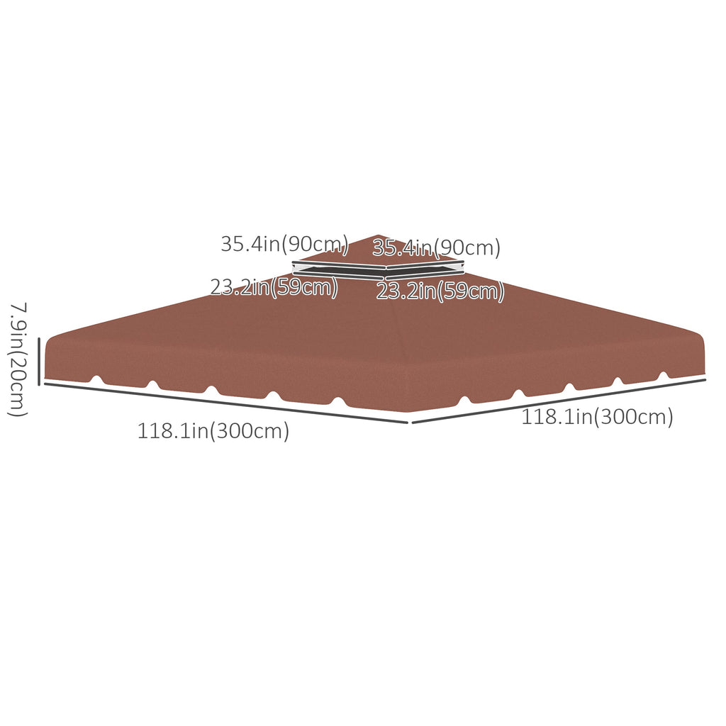 Enhance your outdoor space with this replacement canopy, designed specifically for the Outsunny 9.8' x 9.8' (3 x 3 m) gazebo (SKU: 84C-051). The double-tier roof design with vents promotes excellent airflow, making it ideal for breezy days while offering shade and sun protection. The mesh design around the roof prevents debris, such as leaves, from entering, keeping your space clean and comfortable. Crafted from breathable fabric, the canopy allows a cool breeze to flow through, ensuring a pleasant experience during hot weather. This canopy is easy to install with convenient hooks and loops to secure it to your gazebo frame. Additionally, the eight built-in overflow holes allow water to drain efficiently in case of rain, keeping the canopy in great condition. Please verify the dimensions of your gazebo frame to ensure proper fit before purchasing.