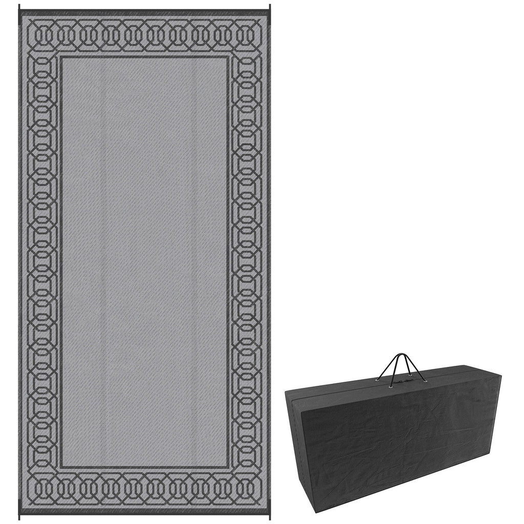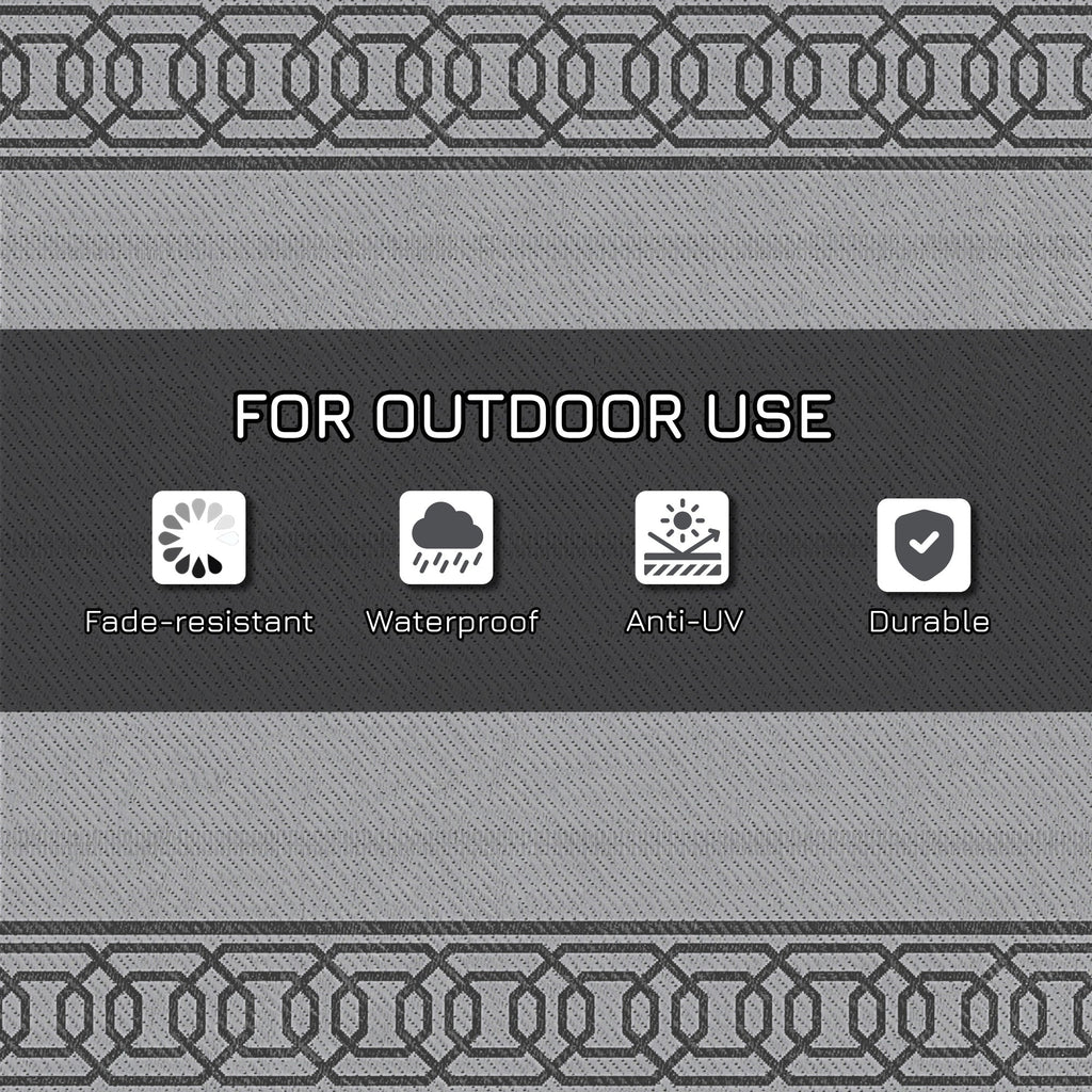 Experience the convenience and versatility of this reversible camping rug, designed to enhance your outdoor adventures. With a double-sided design, this rug offers the flexibility to switch to the other side if one side gets dirty and cleaning is inconvenient, ensuring continued use without hassle. Crafted from 100% polypropylene, it is built for durability and longevity, with a sun protection treatment that helps prevent fading and other sun-related damage. The rug is lightweight and easy to fold into a compact size, and it comes with a complimentary carry bag, making it perfect for RV road trips, camping, picnics, beach outings, or simply relaxing in your garden. Equipped with four corner straps, this rug can be secured using ground stakes or small poles to prevent it from being displaced by wind. Maintenance is easy—simply rinse with water, sweep, or wipe with a damp cloth, and let it air dry. Measuring 9' x 18' (274 x 548 cm), this rug provides ample space for a variety of outdoor activities. Please note, it is not fireproof, so keep it away from open flames, embers, and ashes.