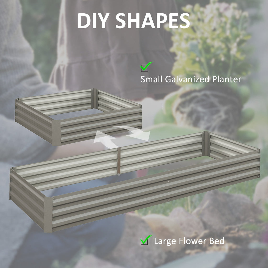 The Outsunny 95"x36"x12" Galvanized Raised Garden Bed is the perfect solution for cultivating flowers, herbs, vegetables, or plants in your garden. Made from durable, galvanized metal, this elevated planter box ensures long-lasting performance and protection against the elements. The spacious design offers ample room for various plants to grow, while the elevated height provides easy access, reducing the need to bend down and making gardening more comfortable. Its sleek silver finish adds a modern touch to any outdoor space, enhancing the aesthetic appeal of your garden, patio, or balcony. Whether you're a seasoned gardener or just starting, this raised garden bed offers a sturdy and practical option for growing your favorite plants in a controlled environment. With its easy assembly and durable construction, it’s designed to withstand the test of time and provide years of reliable use.
