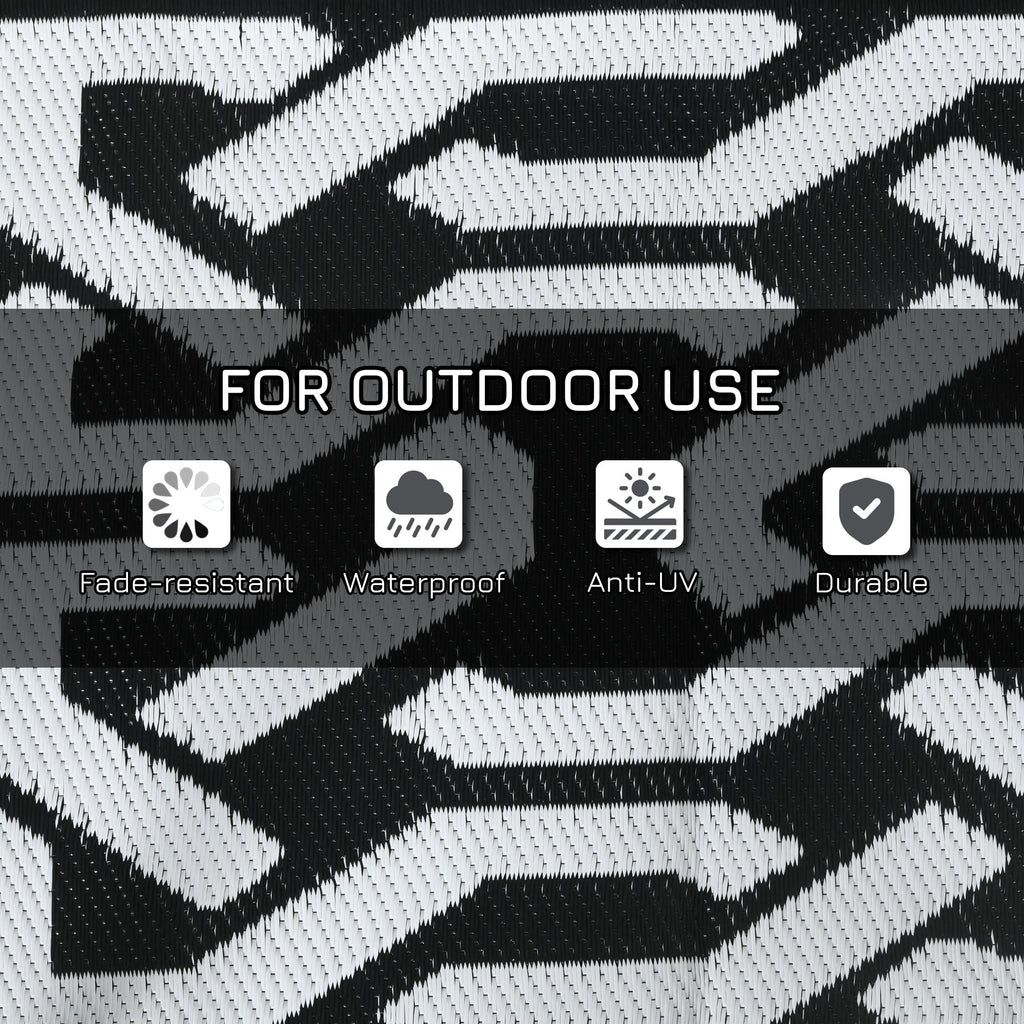 Elevate your outdoor experiences with the Camping & Outdoor RV Rug. Perfect for camping, RV road trips, picnics, beach outings, and more, this versatile mat offers a reversible design, allowing you to flip it over for a clean surface if the other side becomes soiled. Crafted from durable 100% polypropylene, this outdoor rug is designed to withstand the elements. Its built-in sun protection prevents fading and other types of discoloration. Lightweight and foldable, it packs easily into the complimentary carry bag provided, making it convenient to take along wherever you go. With four corner straps for added stability, you can secure it with stakes or poles to keep it in place even on windy days. When it’s time to clean, simply rinse, sweep, or wipe the rug for hassle-free maintenance. Make your outdoor adventures more comfortable with this durable, easy-to-maintain mat.