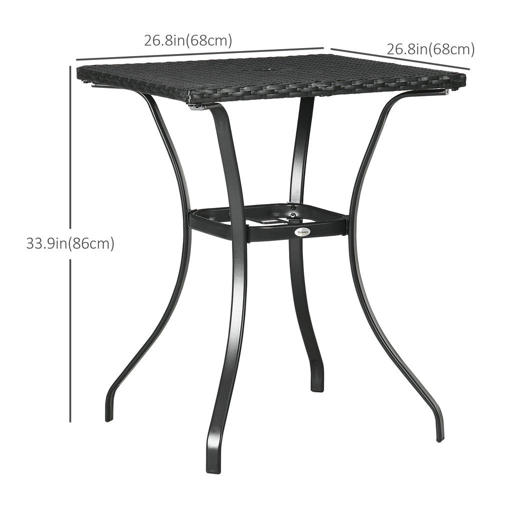 Create the perfect gathering spot in your backyard, patio, or balcony with this Outdoor Rattan Table, crafted for both comfort and durability. Accommodating up to four people, this stylish PE rattan dining table is perfect for meals, drinks, games, or casual conversations. The tabletop features a center umbrella hole that fits poles up to 1.5 inches (3.8 cm) in diameter, giving you the flexibility to add shade on sunny days. Designed with a curved leg support structure and protective footpads, this table ensures excellent stability and floor protection. The surface is easy to clean, and the full rattan weaving over a plastic board base ensures lasting durability. Its powder-coated steel frame adds strength and weather resistance, making this a reliable and elegant addition to any outdoor space.