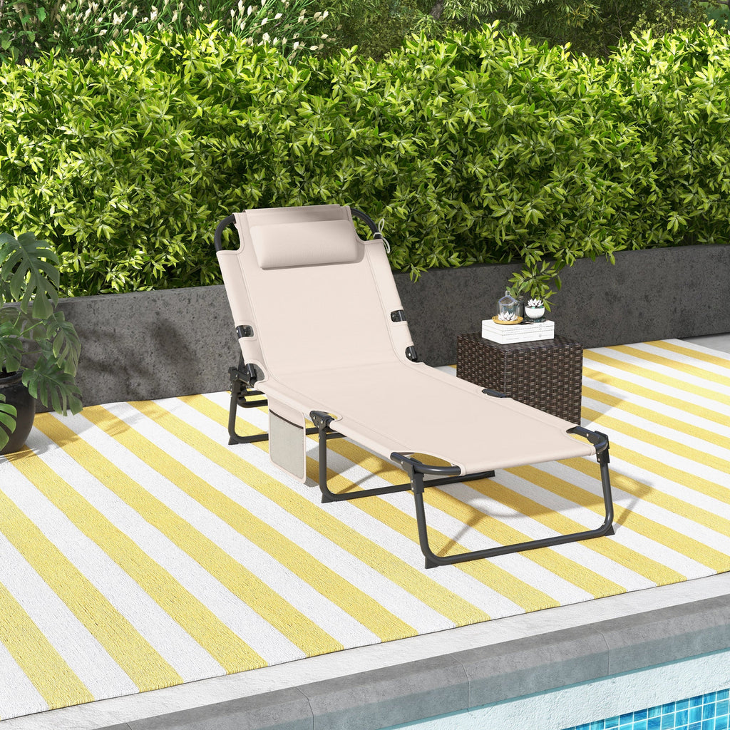 Relax in style with this versatile outdoor furniture set, perfect for both indoor and outdoor lounging. Ideal for small patios, apartments, balconies, front porches, poolside areas, or gardens, this beach lounger provides comfort and convenience wherever you place it. The adjustable backrest allows for four reclining angles, from sitting upright to lying down completely, with dimensions of 26.8" W x 74.4" D x 11.8" H (68 x 189 x 30 cm). The soft headrest enhances comfort, and the seat cushion is removable for customization. A convenient side pocket keeps your essentials close by. Built with a durable metal frame, powder-coated finish, and weather-resistant mesh fabric, this chair offers up to 264 lbs (120 kg) weight capacity and is easy to clean. Plus, it’s foldable for portability, making it ideal for bringing to the beach or any outdoor adventure.