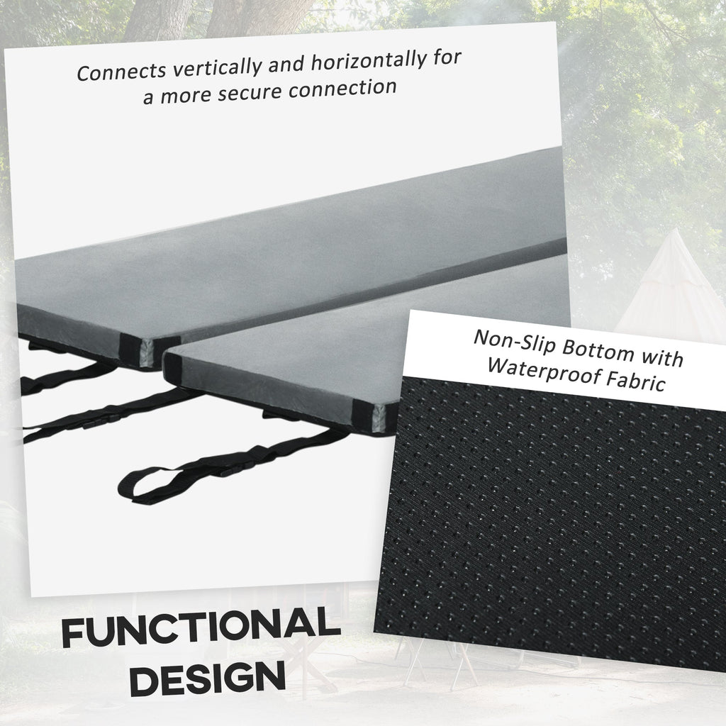 Enjoy a restful night under the stars with this comfortable and supportive camping mattress. Featuring a unique 2-layer design, this sleeping pad combines 1/3 memory foam and 2/3 high-density support foam to provide the perfect balance of comfort and support, ensuring you wake up refreshed and energized. The memory foam contours to your body while the support foam keeps the mattress firm and durable, even after long-term use. Waterproof and non-slip, the pad is designed to keep you warm, dry, and comfortable no matter the outdoor conditions. The soft woven fabric is both waterproof and anti-slip, preventing air movement and heat loss during your camping trips. Easy to roll up and store in the included travel bag, this versatile mattress is perfect for camping, traveling, indoor use for house guests, or as a play mat for kids. Additionally, it features eight hook and loop fasteners in the corners, allowing you to customize your mattress pad for added convenience.
