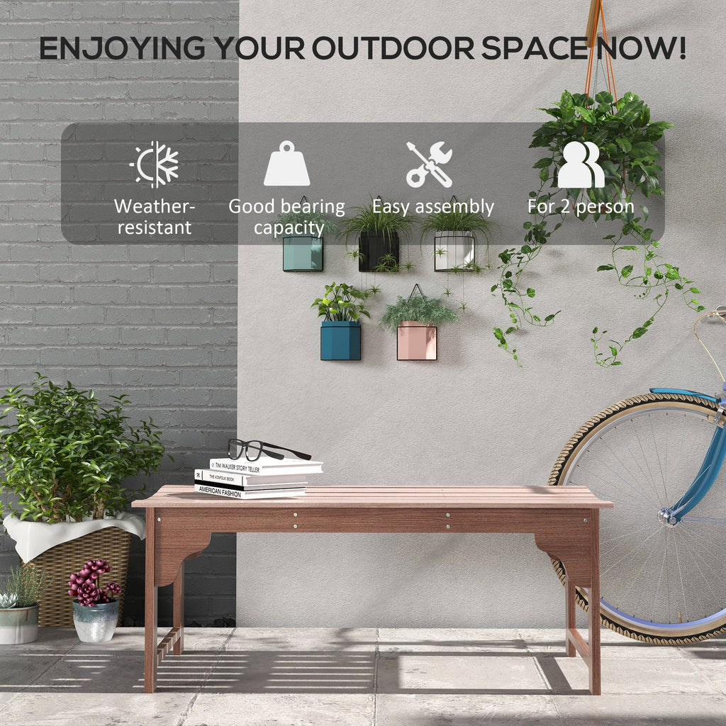 Sit back and relax with a friend on this stylish Two-Seater Garden Bench. With a spacious 45.3" seat, this bench offers a classic, rustic slatted design perfect for outdoor settings such as patios, porches, balconies, or gardens. Designed to withstand the elements, the bench features a slatted, curved seat that prevents water build-up and allows air to flow through, ensuring you stay comfortable in all weather conditions. Made from 100% solid poplar wood, this outdoor bench is treated with a weather-safe varnish to ensure durability and long-lasting use. Easy to assemble with included hardware and instructions, it’s the perfect addition to any outdoor space, providing both function and style.