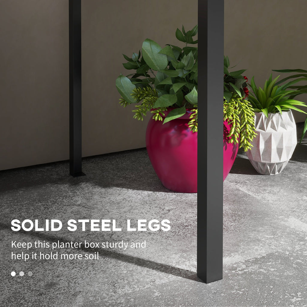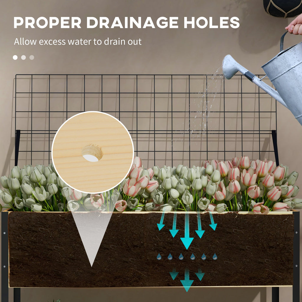 Create a vibrant and vertical garden with this Raised Garden Bed with Trellis and Steel Legs, designed to enhance your outdoor décor and maximize planting potential. Featuring a spacious 3.8' x 1.8' raised planter bed, it holds up to 45 gallons (170 liters) of soil—ideal for growing flowers, vegetables, herbs, or decorative greenery. A built-in lattice trellis adds visual charm and functionality, allowing you to support climbing plants or hang small decorative items like lights, keychains, or garden-themed décor. Constructed with powder-coated steel legs and a unique double-layer support structure, this planter provides excellent stability and strength to support a fully filled soil bed. Integrated drainage holes and a breathable non-woven fabric liner help maintain healthy plant roots and prevent water buildup, promoting a healthier growing environment.