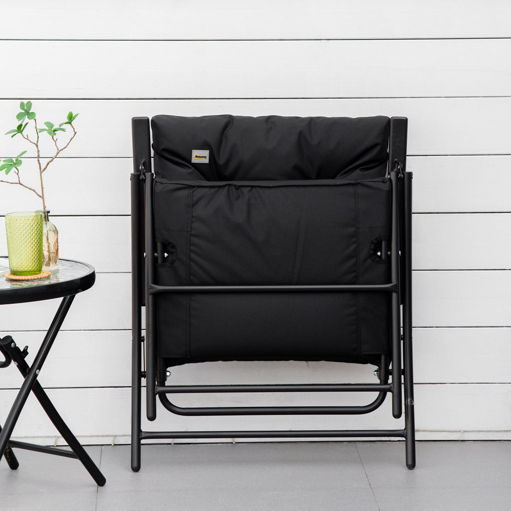 Enjoy outdoor comfort with this adjustable folding lounge chair, perfect for camping, backyard relaxation, sporting events, or patio lounging. Designed with an adjustable backrest that locks into two fixed positions, this outdoor chair lets you recline and relax with ease. Its foldable design allows for quick setup, convenient storage, and hassle-free transport. The chair features a soft, padded cushion upholstered in smooth polyester fabric for lasting comfort, securely attached to stay in place. Built with a durable powder-coated metal frame, this chair supports up to 264 lbs and stands up to various weather conditions, making it ideal for year-round outdoor use.