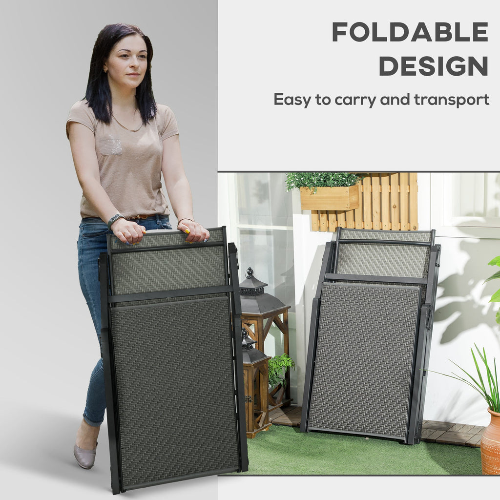 Elevate your outdoor leisure with the Outsunny Rattan Reclining Lounge Chair with Cushion, a stylish and functional addition to any garden, patio, poolside, or deck. Crafted with all-hand woven PE rattan wicker and a powder-coated metal frame, this lounge chair is designed to endure the elements while offering timeless elegance and comfort. The adjustable backrest reclines into five relaxing positions, letting you read, sunbathe, or nap in the perfect posture. A soft, padded cushion with removable, washable cover and secure ties adds to the comfort, while the foldable design allows easy transport for beach days and travel. Whether it’s quiet mornings or lazy afternoons, this lounger matches your outdoor style while delivering durable performance.