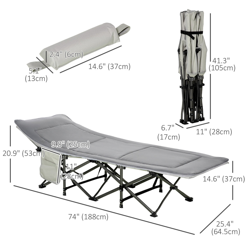This versatile folding cot is the perfect companion for all your outdoor and indoor adventures. Featuring a portable folding design, it comes with a convenient travel bag for easy storage and transport, making it ideal for camping, hiking, traveling, or any outdoor activity. The dual-use mattress offers comfort year-round: one side is covered with soft velvet for warmth in fall and winter, while the other side features cooling ice silk, making it perfect for hot weather. The mattress is filled with fluffy foam for extra coziness. Built with updated steel tubes and double-layer 600D oxford cloth, this cot is strong enough to support up to 330 lbs, making it suitable for tall adults, heavy individuals, and children. For added comfort, the cot includes a headrest and a storage bag for extra convenience. Whether you're using it outdoors for camping or as a temporary bed indoors, this cot ensures a restful sleep experience.