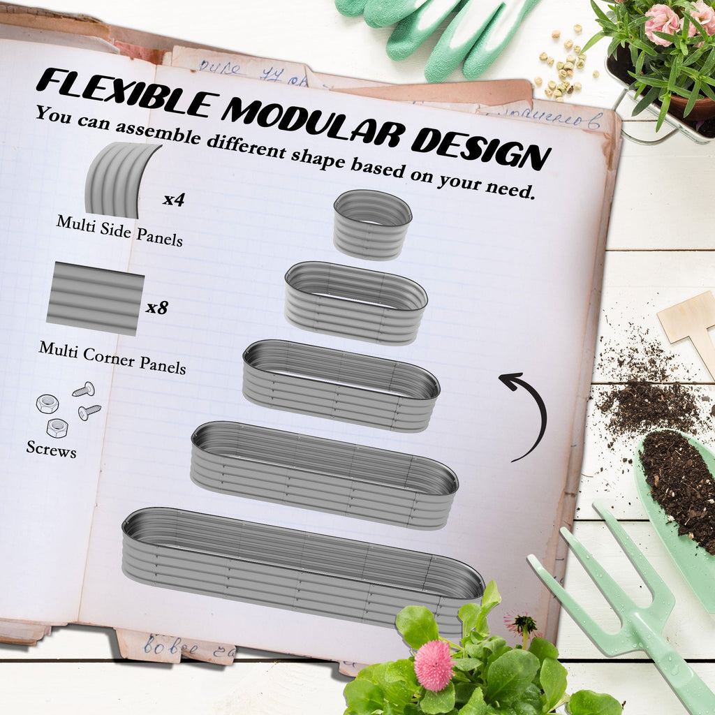Elevate your gardening experience with this extra-long Modular Raised Garden Bed, built for resilience, flexibility, and safety. Crafted from 0.6mm thick galvanized steel, this planter resists rust, warping, and weather damage—delivering lasting durability with minimal maintenance. Reinforced with fastening screws at each connection point, it maintains its structural integrity over time. The top edge is lined with a protective rubber strip to prevent accidental cuts while handling or assembling. Its open-bottom design promotes optimal drainage and prevents root rot, encouraging healthier plant development. With a modular panel system, this garden bed can be reconfigured into different layouts to fit your garden or patio space. Its expansive length is ideal for larger planting projects involving vegetables, herbs, or flowers.