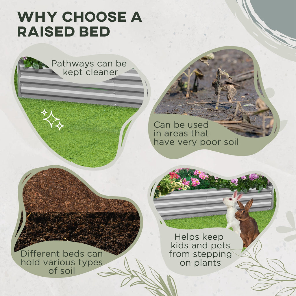 Transform your backyard corner into a flourishing garden space with this spacious L-shaped Galvanized Raised Garden Bed. With an expansive footprint measuring 81.9" x 109.4" x 11.8", this elevated planter offers ample room for planting a variety of herbs, vegetables, and flowers. Its open-bottom design supports deep root growth while effectively draining excess water, helping to prevent rot and soil oversaturation. Perfect for outdoor settings, the garden bed is crafted from weather-resistant galvanized steel and features four reinforcing rods for added structural stability. The unique L-shaped configuration is ideal for wrapping around corners, maximizing unused space, and adding visual interest to your garden layout.
