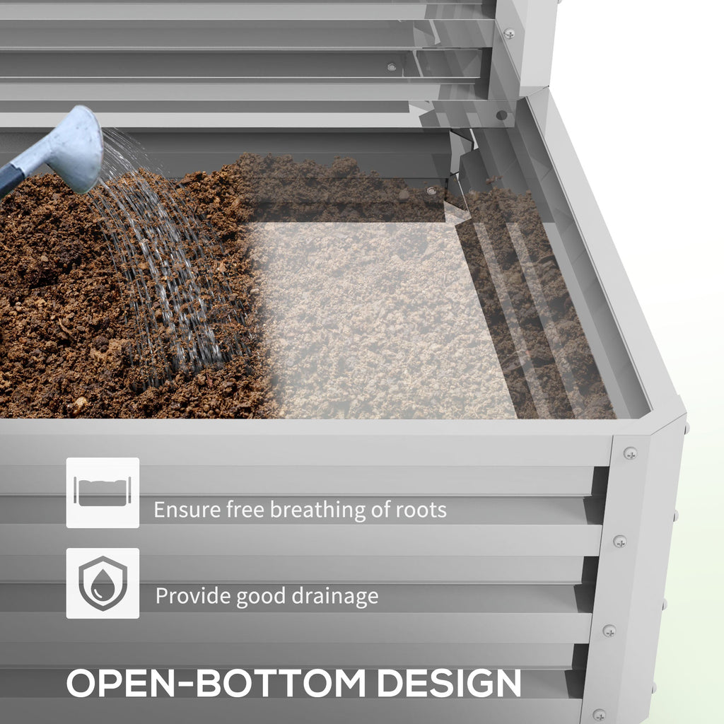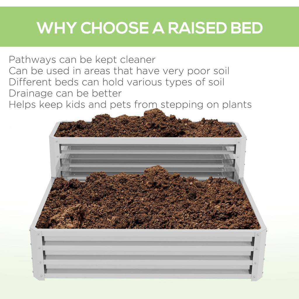 Create a flourishing garden with this Stair-Step Tiered Raised Garden Bed, perfect for organizing and optimizing your outdoor growing space. Designed with two tiered planting sections, this elevated garden bed accommodates a variety of plants with different root depths—from compact herbs and flowers to larger vegetables and deep-rooting crops. Its open-bottom design promotes healthier root systems and improved drainage, helping prevent water buildup and root rot. Made of durable galvanized steel, this garden box resists rust and weather damage, making it ideal for year-round outdoor use. Whether you're gardening on a patio, lawn, or in a backyard, the easy-to-assemble structure provides a clean and efficient layout that separates plants by size and type, enhancing both functionality and aesthetics in your garden.