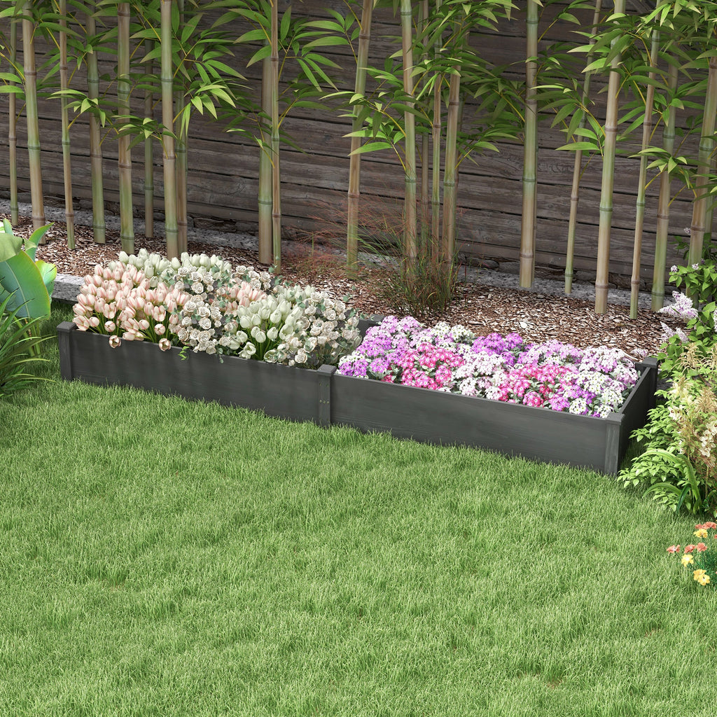 Transform your garden space with this Outdoor Raised Garden Planter Box. Divided into two separate planting areas, this flower planter box allows you to cultivate a variety of plants, including vegetables, herbs, and flowers. Its open-bottom design ensures excellent drainage while preventing soil loss, promoting healthier plant growth. The non-woven fabric at the bottom offers optimal water flow while keeping the soil in place. This raised planter is perfect for those looking to keep weeds at bay and shield plants from small animals. The durable solid wood construction is designed to withstand outdoor wear and tear, ensuring years of reliable use. Whether you're planting on your patio, lawn, or in a greenhouse, this simple and efficient design makes gardening easier and more accessible.