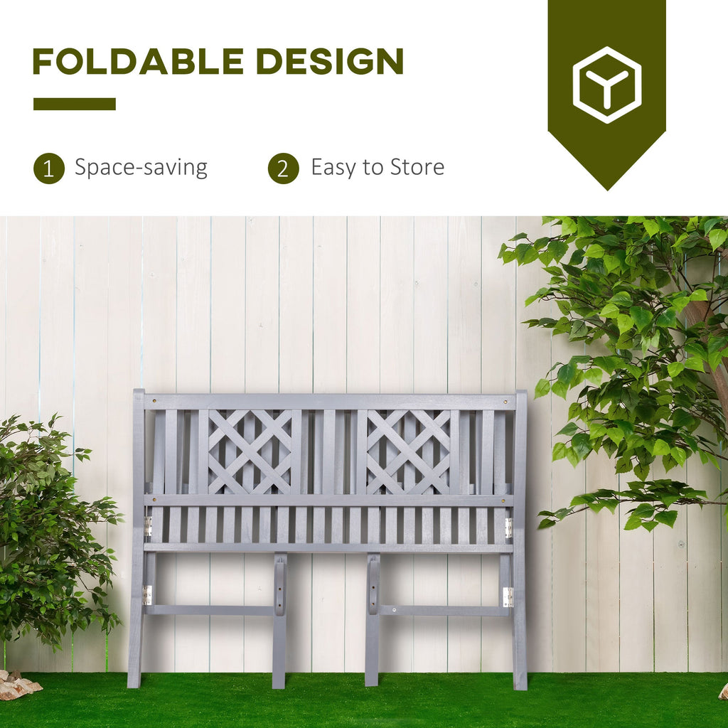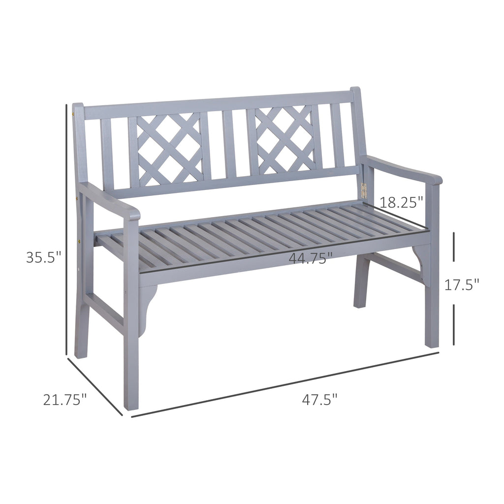 Enhance the beauty and comfort of your garden with this Attractive Foldable Garden Bench. Featuring a classic design with decorative lattice details on the back, this bench adds a touch of elegance and country charm to any outdoor space. Its foldable design allows for easy storage during wet or winter months, making it perfect for year-round use. The wide seat accommodates up to two people comfortably, providing ample space to relax. Built with a high, open-bottom backrest and slatted seat, it promotes ventilation and drainage to keep you cool. Made from heavy-duty solid poplar wood with a water-based paint finish, this sturdy bench is crafted to last, making it an ideal addition to your porch, deck, poolside, or garden path.