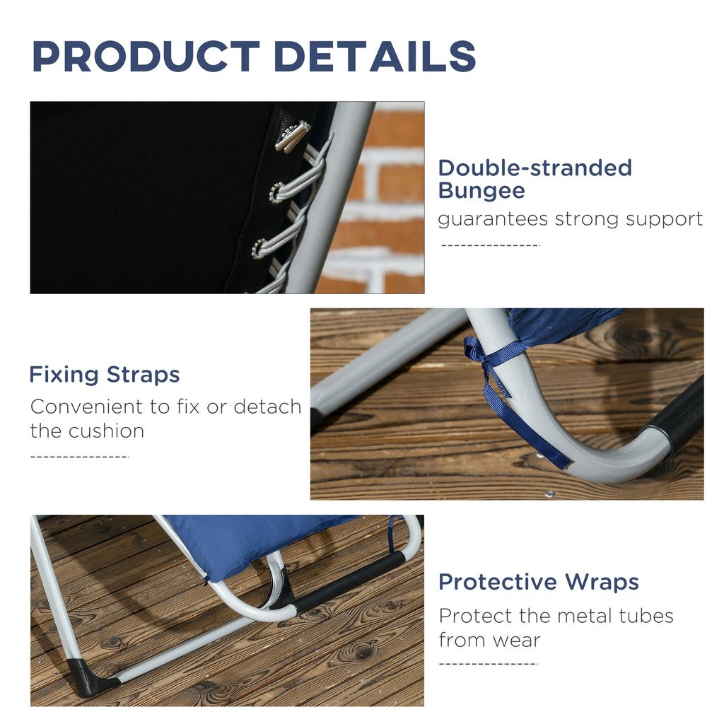 Enjoy the ultimate relaxation with this Reclining Outdoor Lounge Chair. Featuring a stepless adjustable backrest, this chair is designed to fit the natural contours of your body for maximum comfort. Whether you’re lounging in your backyard, attending a sporting event, or heading out for a camping trip, this chair offers the perfect blend of convenience and comfort. The removable cushion and pillow allow you to customize your relaxation experience, offering flexibility based on your preferences. Easy folding design makes it portable, so you can easily take it on the go—simply fold it up and stash it in your car. Built with a strong metal frame, the lounge chair is made to last and withstand everyday wear and tear. It features durable Texteline seat fabric and a Polyester cushion cover that ensures long-lasting use. A perfect addition to your outdoor seating collection!