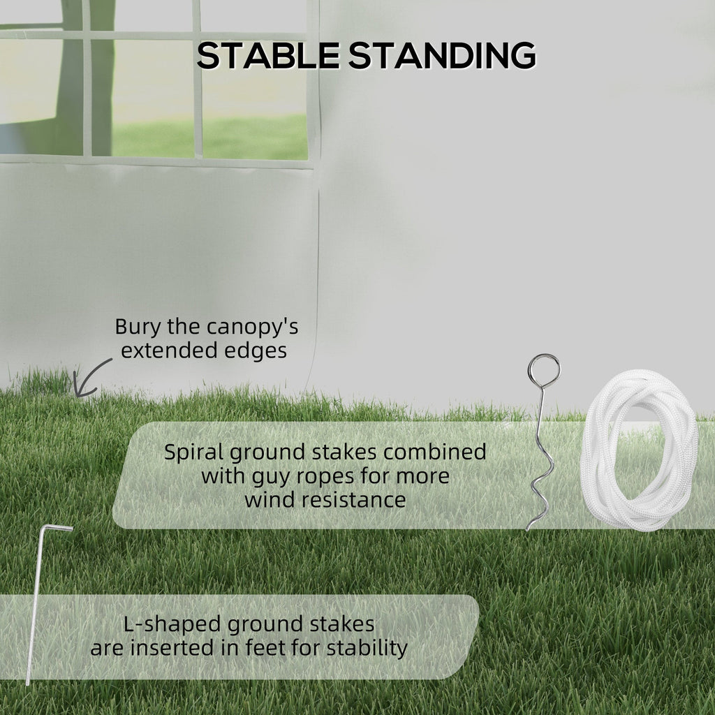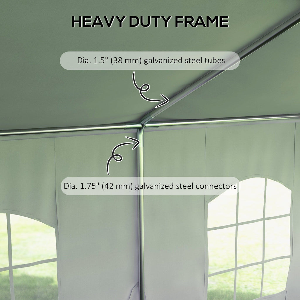 The Extra Large Outdoor Canopy Tent is a versatile and durable solution for any outdoor event, offering ample space for weddings, graduation parties, backyard barbecues, and more. With room to accommodate up to 48 guests, this heavy-duty canopy provides the perfect setting for your celebration. The UV-protective PE top ensures your guests stay cool and protected from the sun while the party continues, offering a safe, shaded space for all. The tent comes with six optional side walls with zippers, allowing you to adjust the level of enclosure or open air as needed. The twenty cathedral-style windows bring in natural light while offering protection from wind. Two large zippered doors ensure easy guest access, making it convenient to move in and out. Built with a 1.5" galvanized steel frame, this canopy is designed to withstand the elements, including moisture and wind. Ground poles and roof stiffeners enhance stability, and the included stakes allow you to securely mount the tent on soft ground, making it ideal for outdoor use in any environment.