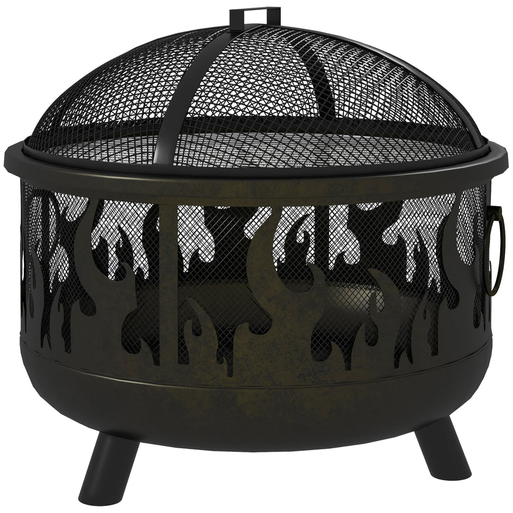 Bring warmth, functionality, and culinary flair to your backyard gatherings with this multi-functional outdoor fire pit grill. Designed with a smart duo concept, it seamlessly transitions from a cozy fire pit to a convenient barbecue grill, making it ideal for summer parties, daytime grilling, and nighttime lounging. The large bottom fire bowl provides ample space for firewood, delivering generous heat output to keep guests comfortable while allowing you to cook multiple items at once. Crafted from 500℃ heat-resistant steel, this fire pit offers long-lasting durability and safety, complete with sturdy stump feet that keep it stable on various surfaces. It features a practical cooking grate for easy food preparation and a mesh lid that enhances safety by containing sparks and flames—plus it helps infuse food with a subtle smoky flavor. With a modern yet rugged aesthetic, this fire pit includes a fire poker for easy flame control and stands at a height of 21.7 inches with a 24-inch wide diameter. Whether you're roasting marshmallows, grilling dinner, or enjoying a night under the stars, this fire pit is the perfect all-in-one centerpiece for outdoor enjoyment.