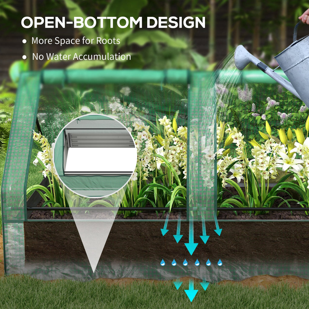 This versatile duo design features a small greenhouse and a bottom-raised flower bed, offering the perfect combination for year-round gardening. Use them together or separately to suit your space and needs. The raised planter bed is made from thick galvanized steel, ensuring durability and preventing warping or deformation from moisture. The open-bottom design prevents water accumulation, allowing for better root growth and nutrient absorption. The attached greenhouse features 2 roll-up windows for easy access and plant management, while the extended cover (3.9" or 10 cm) helps protect your plants from wind, excessive cold, or heat, as well as deterring unwanted pests like rabbits and squirrels. Whether you have a yard or limited space, this set is ideal for creating a productive and well-protected garden.