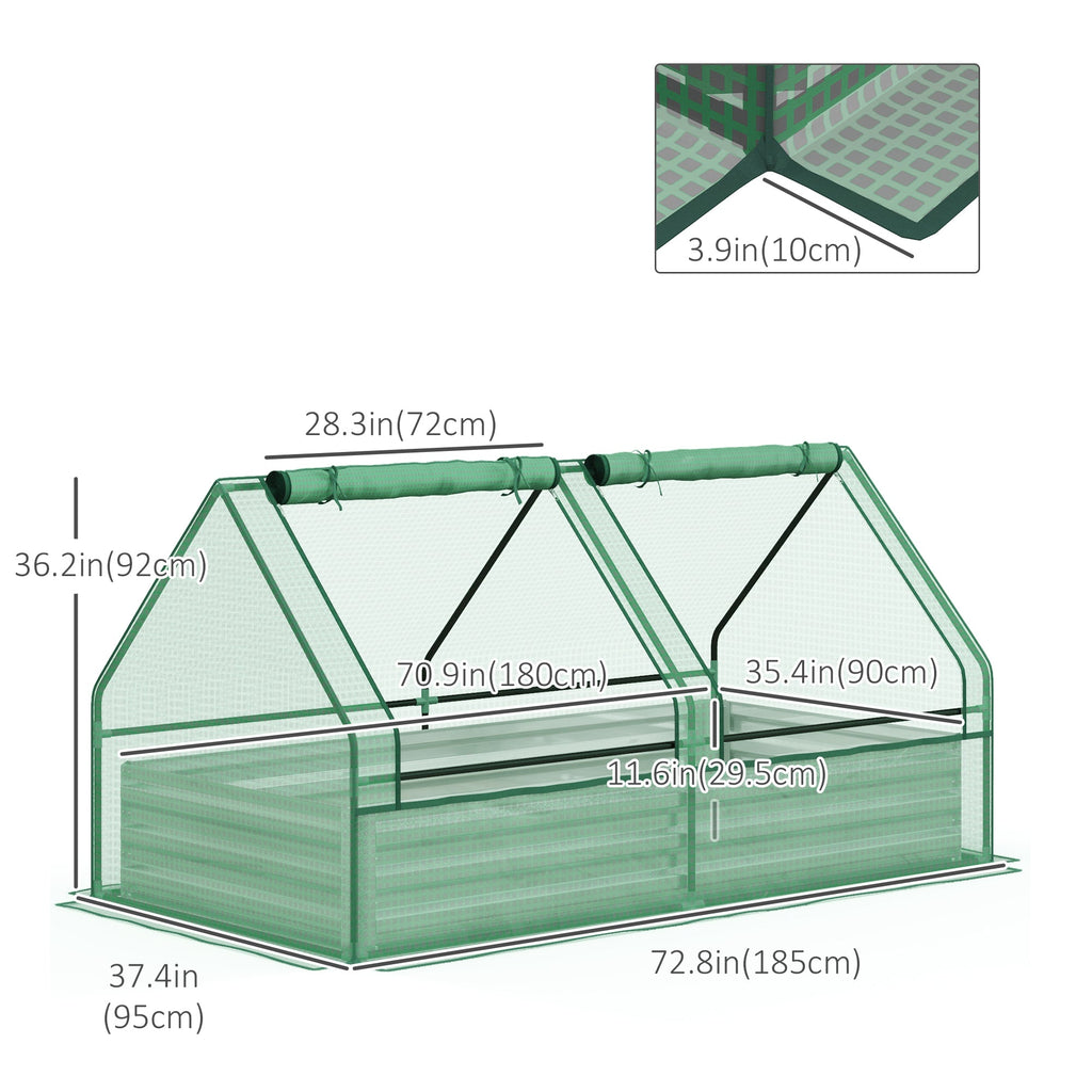 Garden Bed dimensions: 70.9" L x 35.4" W x 11.6" H (180 x 90 x 29.5 cm).