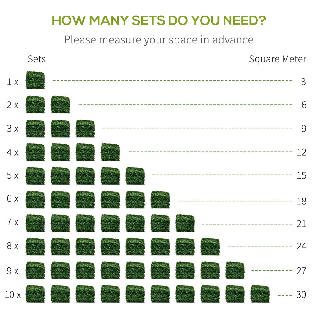 Transform your outdoor space with the lifelike beauty of our artificial grass, designed to mimic the look of Milan Grass and enhance your backyard, patio, garden, or fence. This 12-piece set covers a total area of 33 square feet, with each panel measuring 19.75 inches by 19.75 inches. Crafted to endure various weather conditions, this durable turf is resistant to UV damage, extreme temperatures, rain, snow, and even pet wear, making it ideal for year-round use. The advanced drainage system features a grid pattern backing that ensures efficient water drainage, promoting easy maintenance and cleaning. Installation is a breeze as the turf can be easily cut with household scissors to fit any desired space. Perfect for those looking to add green beauty without the hassle of upkeep.